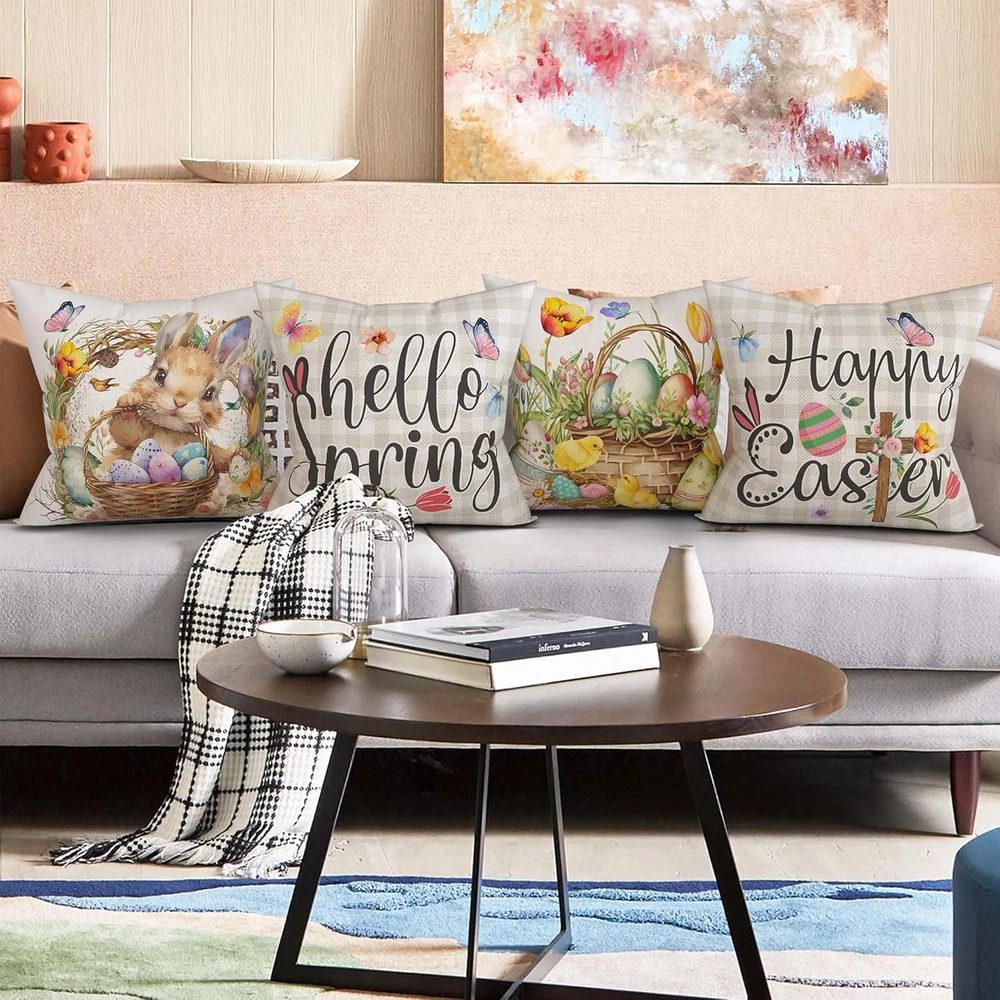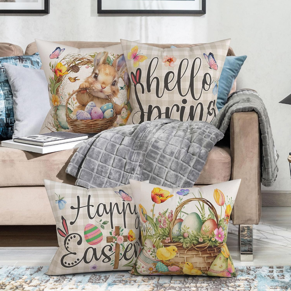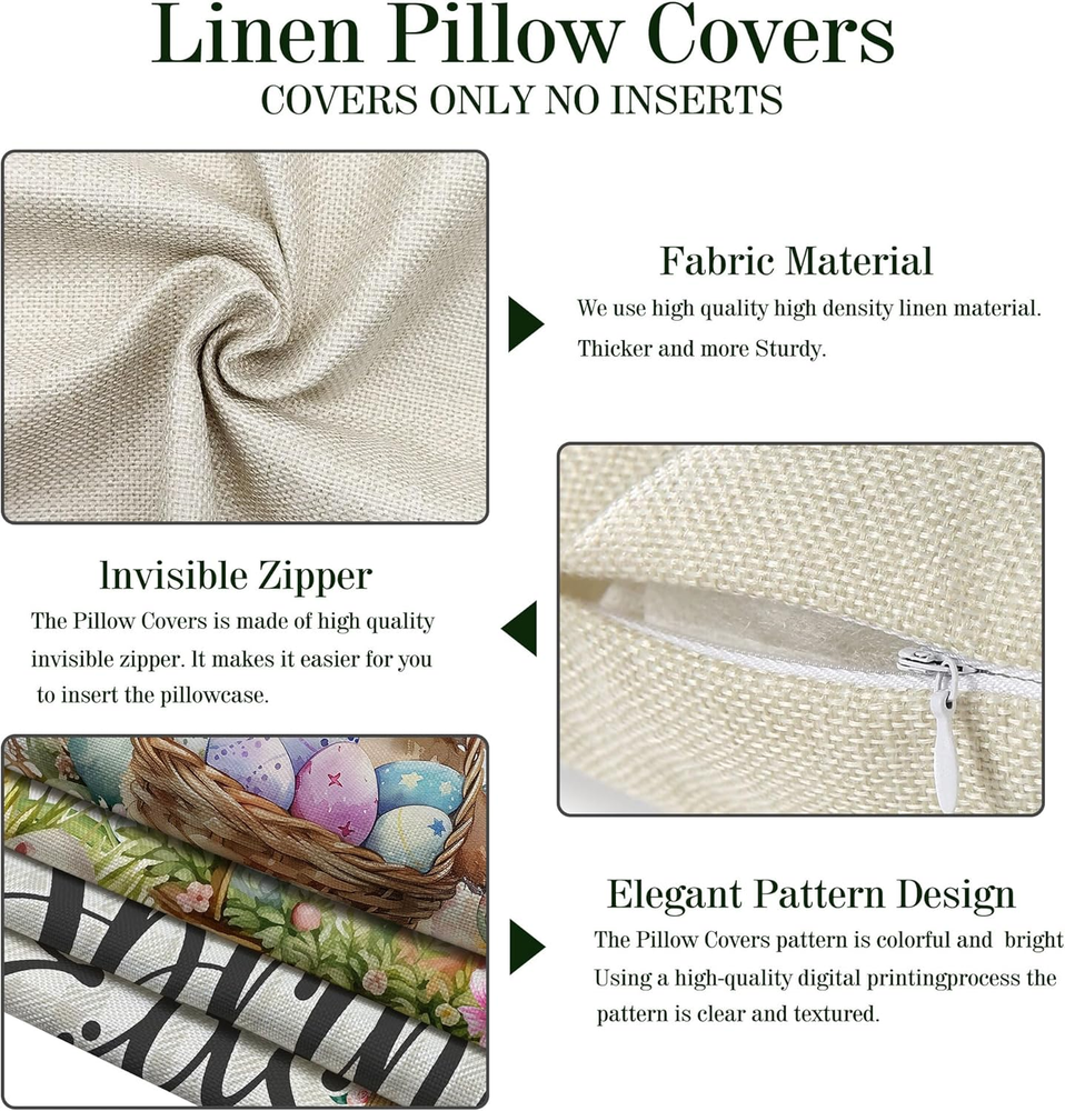 Store New Arrivals Add to Favorite View Feedback Contact Fast deliveries to the customer's home Quality customer service John Make the customers happy! Easter Pillow Covers 18X18 Set of 4 Easter Throw Pillow Covers with Bunny and Eggs Spring Home Decor Buffalo Check Plaid Pillowcase Square Cushion Covers for Sofa Bed Couch Description Linen PREMIUM QUALITY – The easter pillow covers 18x18 set of 4 is made of high quality linen, thick enough for home decorations. Each easter pillow case has hidden zipper with neat stitches, working smoothly and helping you to insert or remove pillow inserts easily. 18x18 PILLOW COVERS ONLY – Each easter pillow cover measures 18" × 18" (Please allow 1-2CM differs due to manual measurement). Pillow cover only, pillow insert is not included. GREAT HOME DECOR FOR HOLIDAY – Our easter pillow covers are featuring the theme of easter, patterned with bunny rabbits and eggs, quite in line with easter. This easter pillow covers set is definitely a must-have choice for your festival decoration. MULTI APPLICATIONS – These easter pillow covers with bunny rabbits and eggs, and phrase “happy easter” and “hello spring” will be a unique decoration for indoor and outdoor, living rooms, bedrooms, restaurants, office. It can also be an excellent festival gift choice. EASY CARE - No need to spend special effort, it is machine washable and dry-able and would hold up well after washing. Wash alone or with similar texture/ color items in cold water on gentle cycle, tumble dry low. ABOUT US Unibyby is dedicated to offering high-quality pillow covers to countless families. Our stylish easter pillow covers will be a perfect decoration for your home and a unique gift choice for your beloved one. Best Home Decor & Festival Gift Choice Thick linen fabric, hidden zipper and festival design make our easter pillow covers a great decoration for indoor, outdoor, living room, bedroom, restaurants and office. Share it to your family and friends as a warm gift. Item model number pillowcover Style Farmhouse Weave Type Plain Weave Number of Items 4 Pattern Print Country of Origin China Theme Easter Number of Pieces 4 Room Type Bedroom, Living Room Batteries required No Product Dimensions 18"L x 18"W Material Linen Shape Square Seasons spring Closure Type Zipper Water Resistance Level Not Water Resistant Item Weight 12 ounces Is Euro Pillow Size No Occasion Easter Special Feature Easter Decoration Color Easter-2025 Pillow Type Throw Pillow Recommended Uses For Product Living room, bedroom, outdoor, holiday decoration, gift Fabric Type Linen Product Care Instructions Machine Wash, Tumble Dry Low Size 18" x 18" (Pack of 4) ABOUT US We offer the best prices around on high quality products. Our E-store includes media such as books, movies, music and games while offering electronics, toys, sporting apparel, clothing, tools, general home, garden items and more. SHIPPING We are always working hard to ensure your package arrives as soon as possible. Please understand that some factors like weather, high postal traffic, and the performance of shipping companies are outside of our control. We offer free shipping to the lower 48 states and ship within 2 business days of payment, usually sooner. We do not accept P.O. Boxes. Please provide a physical address. For shipping outside of the continental USA, we only use eBay's Global Shipping Program. The item is shipped to KY and then sent to the rest of the world. International customers are responsible for all duties and taxes. Continue to 'check out' to calculate costs for shipping the item to your country. Messages regarding eBay's Global Shipping Program MUST be directed at eBay EXCLUSIVELY. RETURNS We offer a 30-Day Return Policy on items in which you are not completely satisfied with. You have the option of a full-refund or an exchange of the item. No returns are available on items shipped outside of the USA PAYMENT We accept PayPal. CONTACT US This page content is yet to come Please ad us to your favorite seller and visit again later Thank You CUSTOMER SATISFACTION We try our very best to make sure every customer is completely satisfied. If there's a problem, message us! We're happy to help. WE ACCEPT