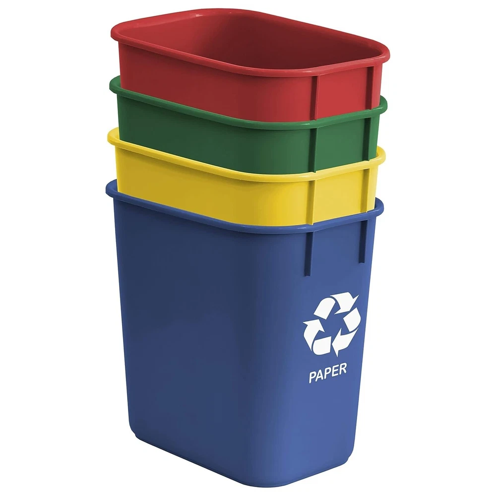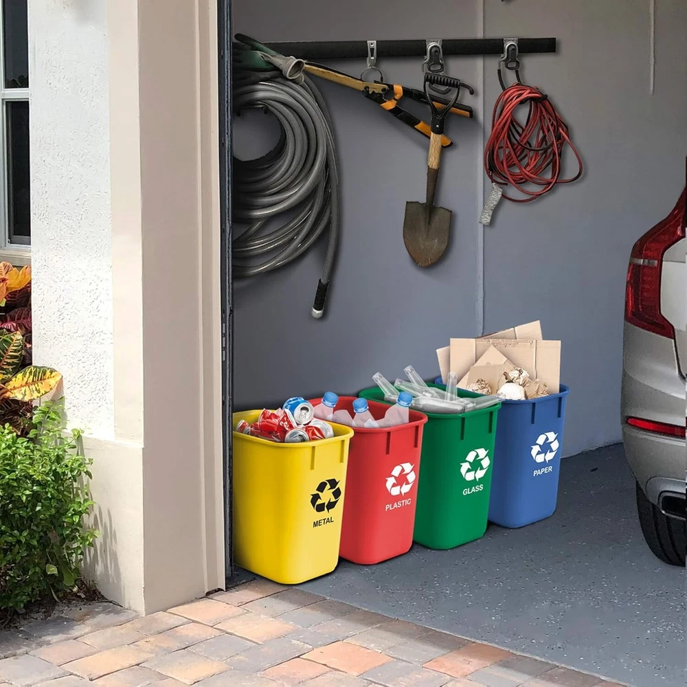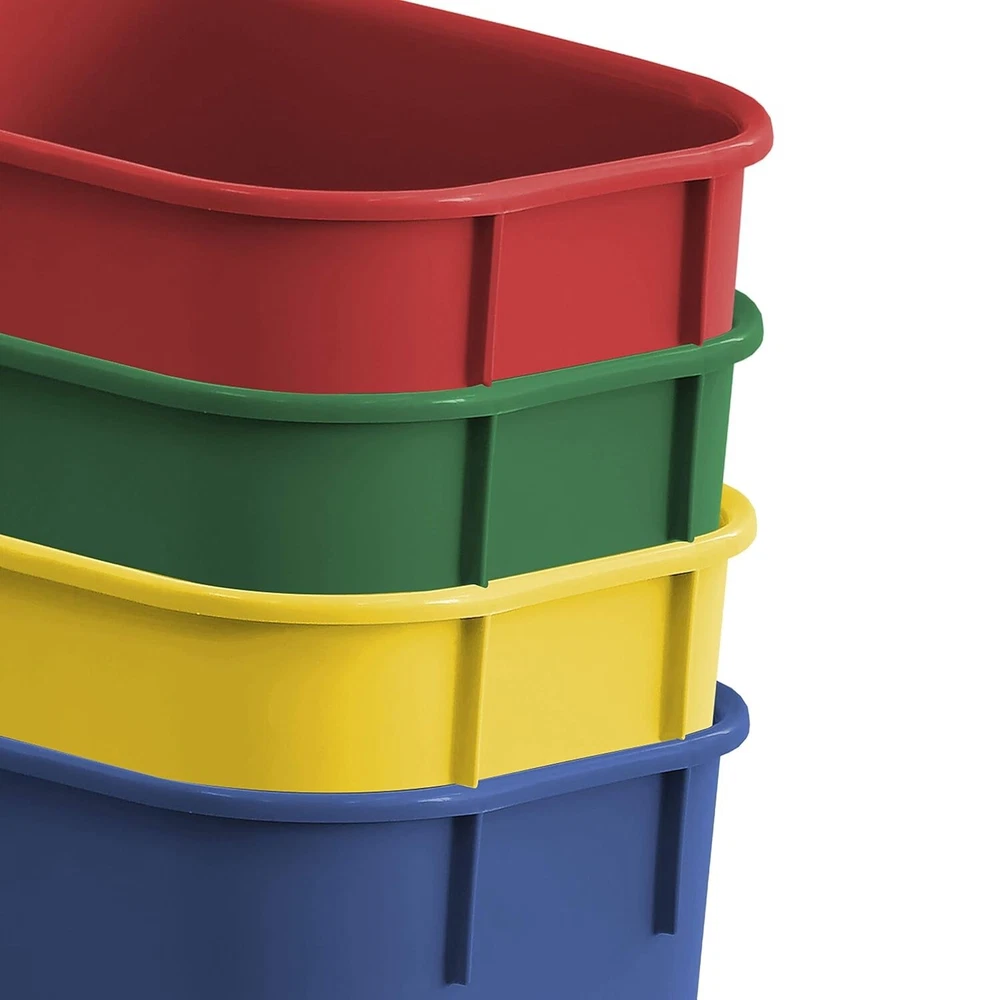 Age Level: 17 Years & Up Features: Stackable Design, Durable Plastic Construction, Easy to Clean Compatible Product: For Recycling Room Type: Office, School, Home, Laundry Room Shape: Rectangular Set Includes: Wastebasket Bin, Metal (Yellow), Paper (Blue), Glass (Green), Plastic (Red) Capacity: 12 Liters Finish Type: Polished Color: Assorted color (Yellow Product Dimensions: 11.81 X 8.35 X 11.5 Inches; 6.17 Pounds gtin13: Does not apply Opening Mechanism: Open-top Type: Wastebasket Material: Plastic Assembly Status: Ready to Go/Pre-built Recommended Uses For Product: Stores Recyclables Perfectly In Any Space Brand: Unbranded Item Weight: 6.17 lb UPC: Does not apply