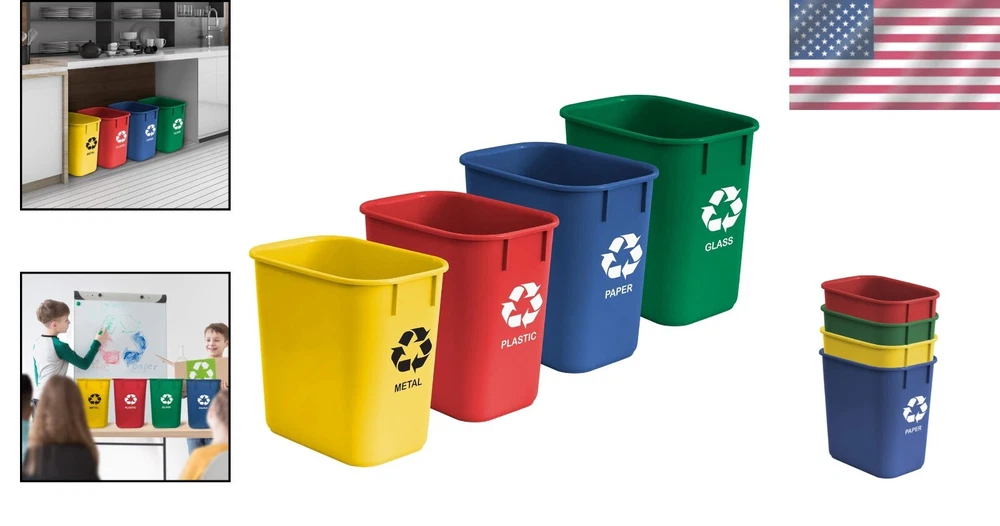 Set of 4 Color-Coded Recycling Bins - 12L Wastebaskets for Eco-Friendly Living ‹ › ‹ › ‹ › ‹ › ‹ › ‹ › ‹ › ‹ › ‹ › ‹ › ‹ › Set of 4 Color-Coded Recycling Bins 12L Wastebaskets for Eco-Friendly Living Features: Efficient Recycling Solution: Each bin is designated for a specific recyclable material: Metal (Yellow), Paper (Blue), Glass (Green), and Plastic (Red). Perfect for offices, schools, and homes, complete with the Universal Recycling Symbol printed on both sides. Durable Plastic Construction: Made from high-quality plastic with thick walls and no sharp edges, built to last and withstand daily use. Stackable Design: Conveniently stackable when not in use, these wastebaskets save space - ideal for small living spaces or offices. Easy to Clean: The smooth surfaces allow for hassle-free cleaning, ensuring you maintain a tidy and hygienic recycling area. Product Dimensions: Each bin measures 11 3/4" X 8 1/4" X 11 1/2", holding approximately 3.25 Gallon/13 Quart/12 Liter. Benefits: Encourages responsible waste disposal and eco-friendly living. Easy identification of recyclables, streamlining the recycling process. Designed for durability and longevity. Space-saving feature is perfect for all environments. Prepares your household or office for a greener tomorrow. Why choose our Set of Color-Coded Recycling Bins? Transform your recycling habits with our Set of 4 Color-Coded Recycling Bins, designed not only for functionality but also for style. Simplifying the recycling process, these bins make it easy to sort your waste properly and contribute to a sustainable future. With durable construction and stackable design, they are the perfect addition to your commitment to eco-friendly living. Choose our recycling bins today and take the first step towards a greener, cleaner environment! Shipping Free & Fast Shipping - We offer free shipping to most of the USA with a normal delivery time of 3-7 days. However, due to the current situation, additional delivery time (up to 3 weeks) may be required for some items. Alternative Carriers - We may use alternative carriers (e.g. USPS, FedEx, UPS, etc.) to ensure your package arrives safely and on time. Due to the use of multiple carriers, we are unable to provide a tracking number automatically. Handling Time - Orders are processed and shipped within 1-2 business days of receiving cleared payment. Shipping Restrictions - Shipping to Alaska, Hawaii, Puerto Rico, Guam, and other US territories may incur shipping charges or delivery restrictions. Please contact us before ordering, or your order can be refunded/cancelled. State Restrictions - There may be restrictions based on your state of purchase. For example, certain items may not be shipped to California due to state regulations. Contact for Tracking Updates - If you require tracking updates or have any concerns about the delivery of your order, please feel free to contact us, and we will be happy to assist you. Return 30-Day Hassle-Free Returns - We want you to be completely satisfied with your purchase. If you are not, you can return the item within 30 days of receiving it for a full refund or exchange. Easy Return Process - To start a return, simply contact us and we will provide you with a prepaid return shipping label and detailed instructions. Restocking Fee - There are no restocking fees for returns. However, the buyer is responsible for return shipping costs if the return is not due to a seller's error. Refund Processing Time - Refunds will be processed within 5 business days of receiving the returned item in its original condition. Payment We accept all major credit cards, PayPal, and Apple Pay for your convenience. Your payment information is secure and encrypted to ensure a safe and seamless transaction. Please complete your payment within 3 days of purchase to avoid any delays in shipping. Feedback Your feedback is extremely important to us. We strive to provide the best products and customer service possible. If you are satisfied with your purchase, please take a moment to leave us a positive review. If you have any concerns or issues with your order, please contact us before leaving negative feedback. We are committed to resolving any problems and ensuring your satisfaction. Contact Us If you have any questions or concerns, please feel free to reach out to our customer support team. You can contact us through the eBay messaging system. We are available Monday to Friday, 9:00 am to 5:00 pm EST, and we will do our best to respond to your inquiry within 24 hours. Buy it now and enjoy a pleasant shopping experience! UPC: Not Set Model: Not Set Unit Quantity: 3.25 Gallon Set Includes: Wastebasket Bin,Metal (Yellow),Paper (Blue),Glass (Green),Plastic (Red) Material: Plastic Features: Stackable Design,Durable Plastic Construction,Easy to Clean Type: Wastebasket Gauge: Not Set Brand: Unbranded Scale: Not Set Color: Assorted color (Yellow Theme: Not Set Compatible Product: For Recycling MPN: Not Set Year Manufactured: Not Set Assembly Status: Ready to Go/Pre-built Country/Region of Manufacture: Not Set Item Height: Not Set Item Width: Not Set Item Length: Not Set Age Level: 17 Years & Up Item Weight: 6.17 lb Unit Type: lb Vintage: Not Set