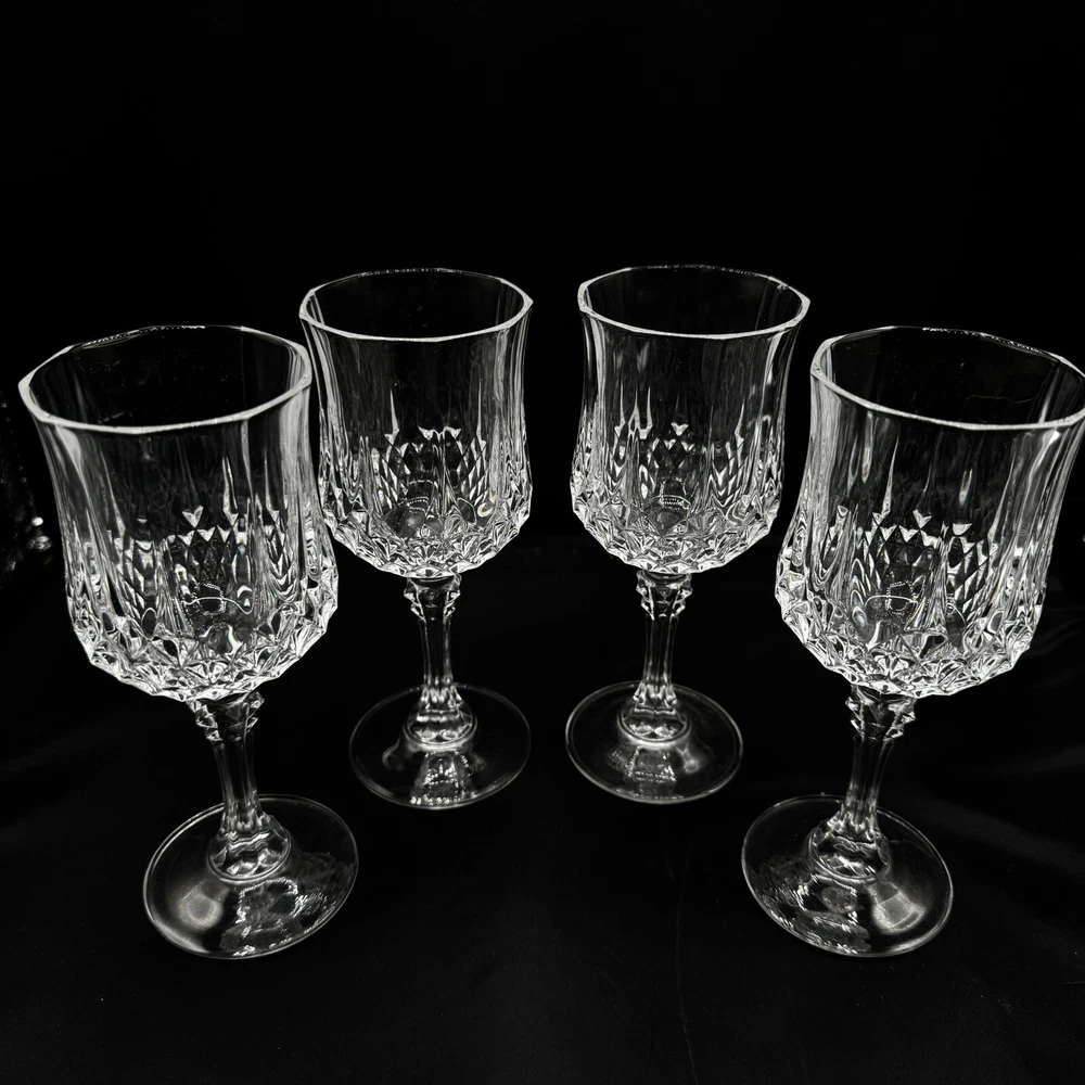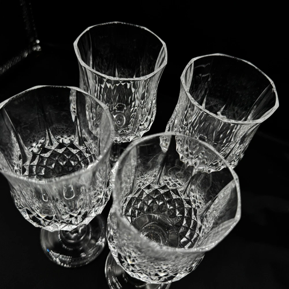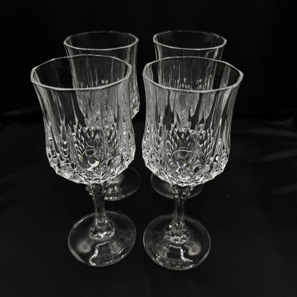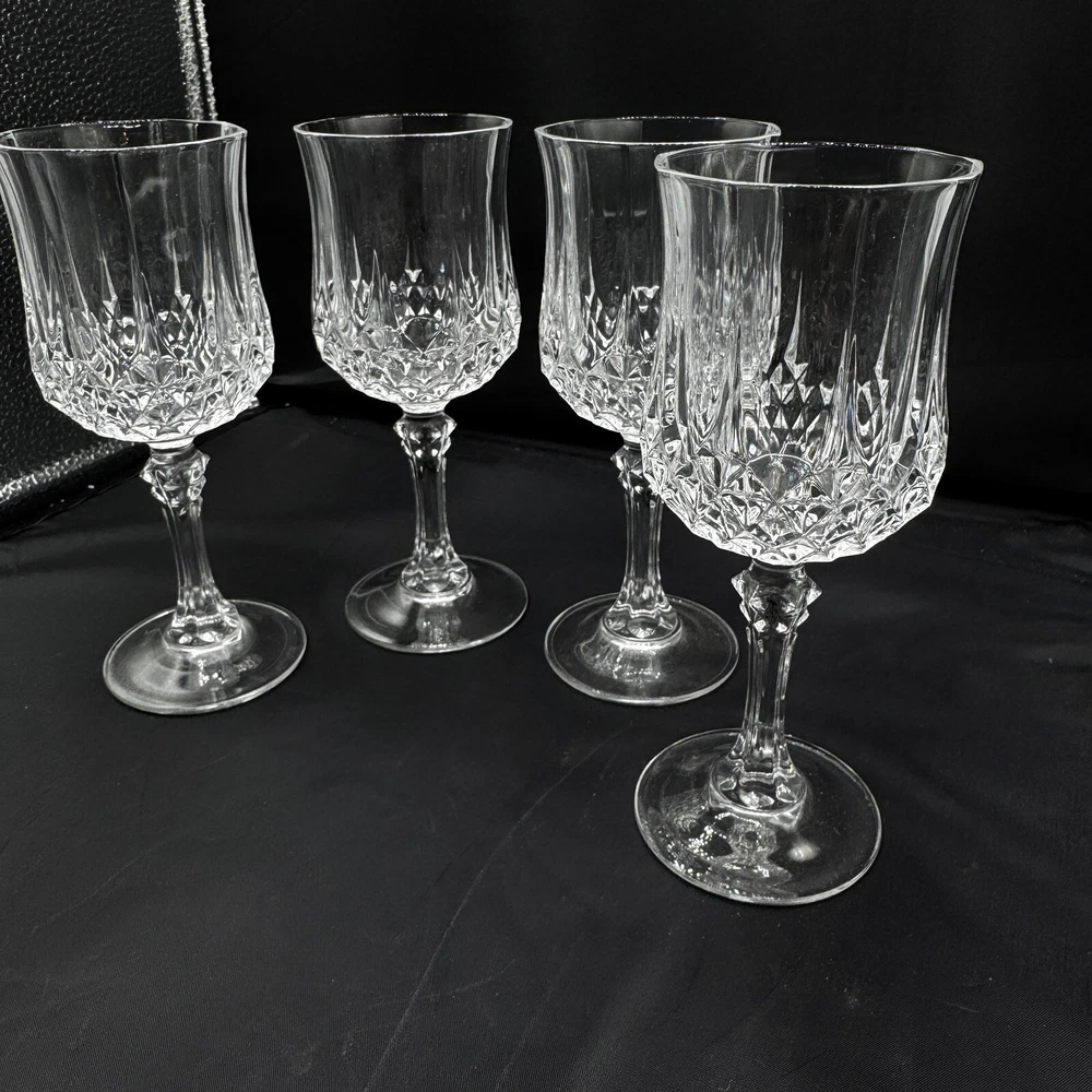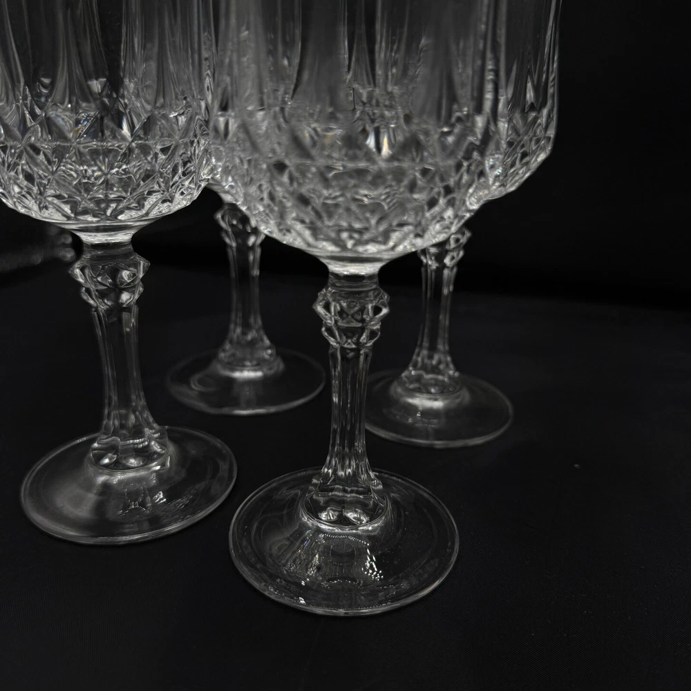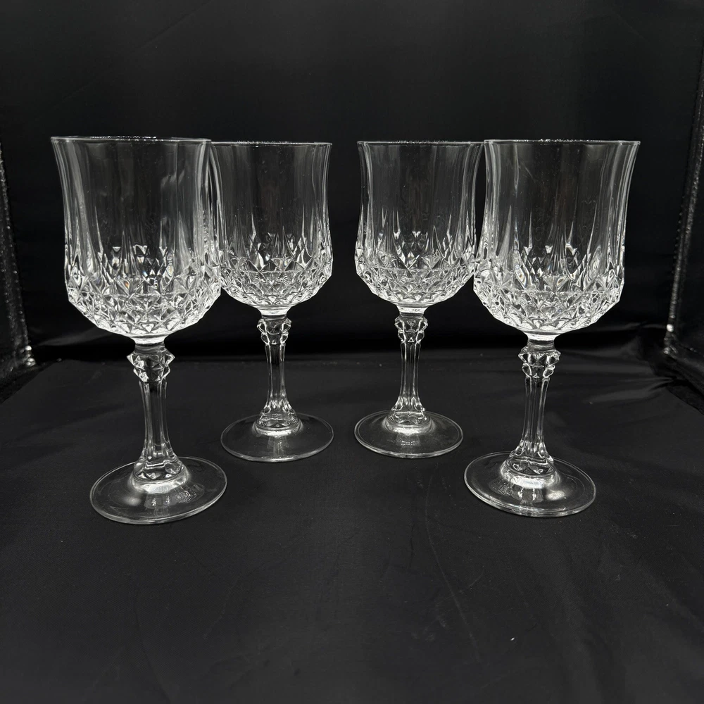 Set of 4 Cristal D'Arques Durand Longchamp Crystal Wine Glass Stemware 6.5” 2 1/2" diameter at top rim and 6 1/2" tall.