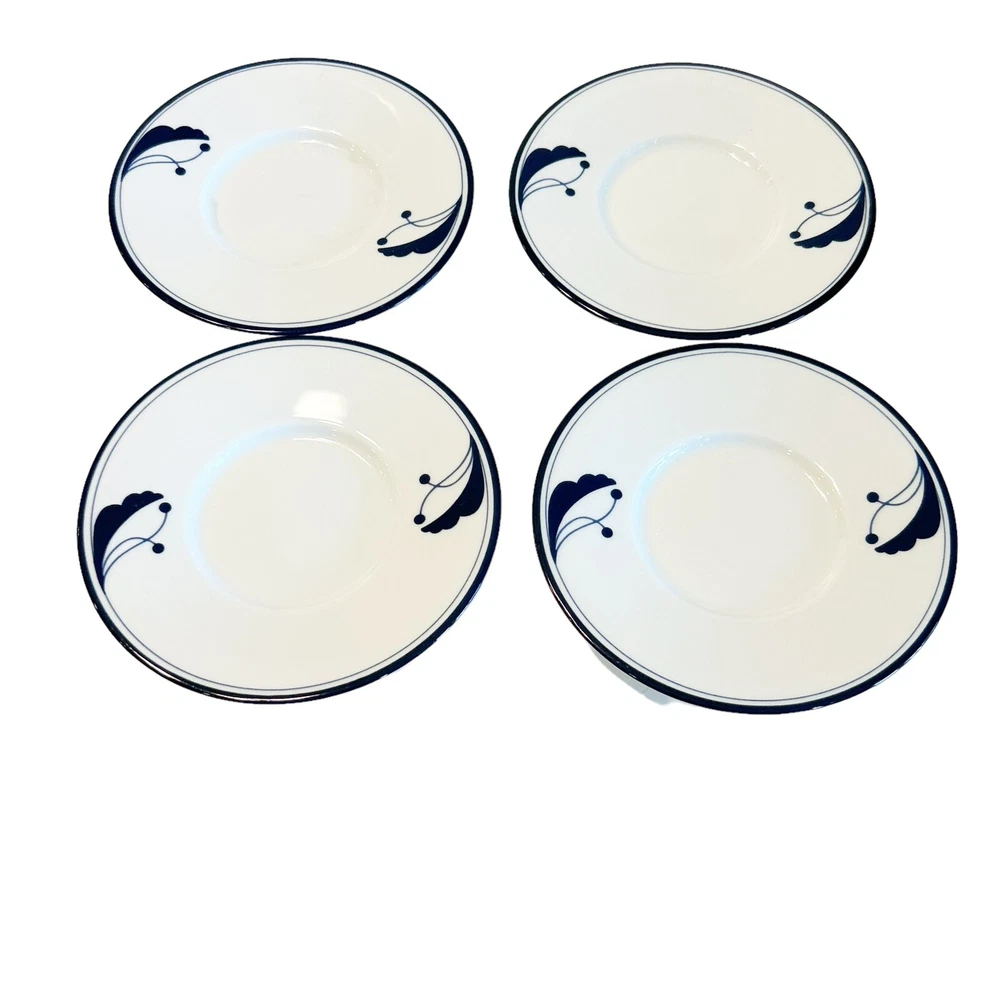 Set of 4 Dansk Flora Bayberry Blue Trim Floral Stems & Berries White Saucers Vtg
