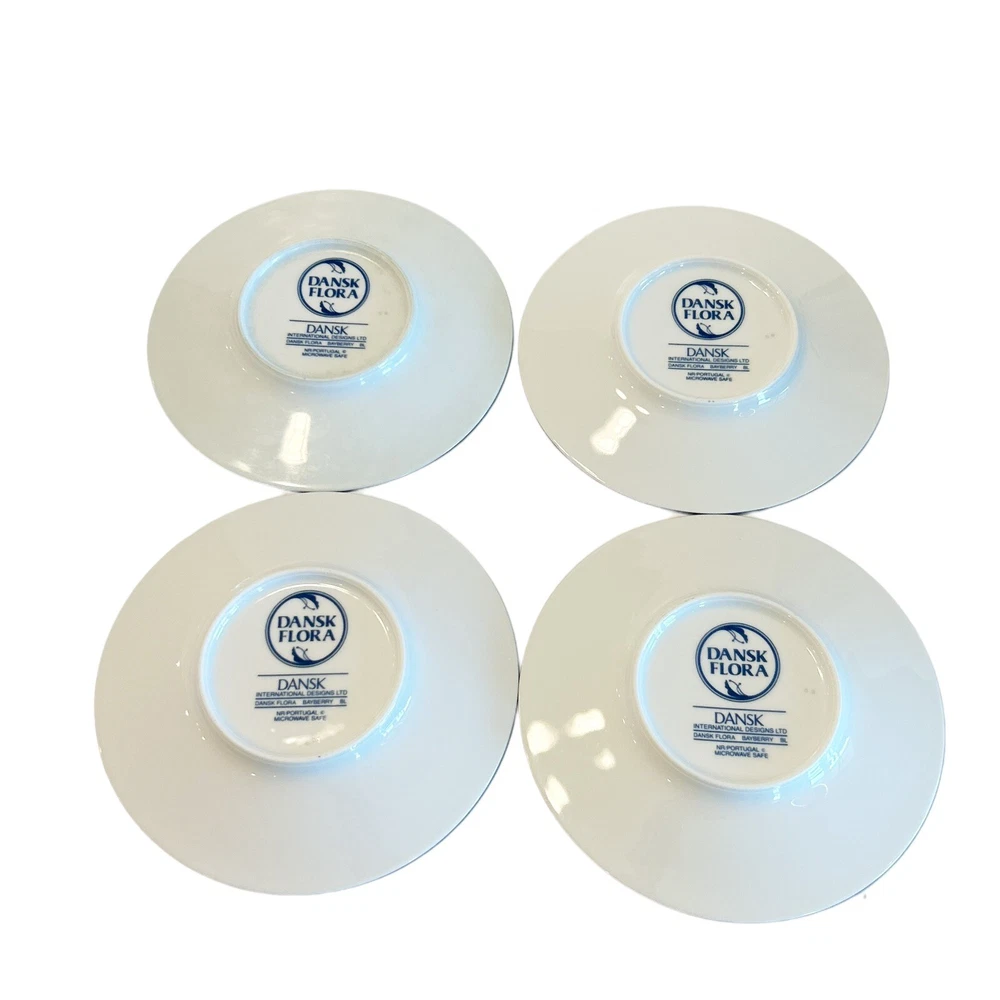 Handmade: No Seller Notes: “Pre-owned condition. Some minor wear on the bottoms. See photos” Antique: No Origin: Japan Color: White Backstamp: Printed Care Instructions: Machine Washable up to 100°F Brand: Dansk Finish: Glossy MPN: NA Country/Region of Manufacture: Japan Shape: Round Era: Late 20th Century (1970-1999) Production Style: Art Pottery Time Period Manufactured: 1980-1989 Set Includes: Saucers Type: saucer Product Line: Dansk Material: Porcelain Production Technique: Pottery Item Height: NA Department: Adult Original/Licensed Reproduction: Original Vintage: Yes Item Weight: 4 lb Item Length: NA Manufacturer Warranty: NA Theme: Flower Year Manufactured: 1986 Pattern: Flora Style: Contemporary Features: Microwave Safe Occasion: All Occasions Number of Items in Set: Four-Piece Plate Diameter: 6.5 in Item Width: NA