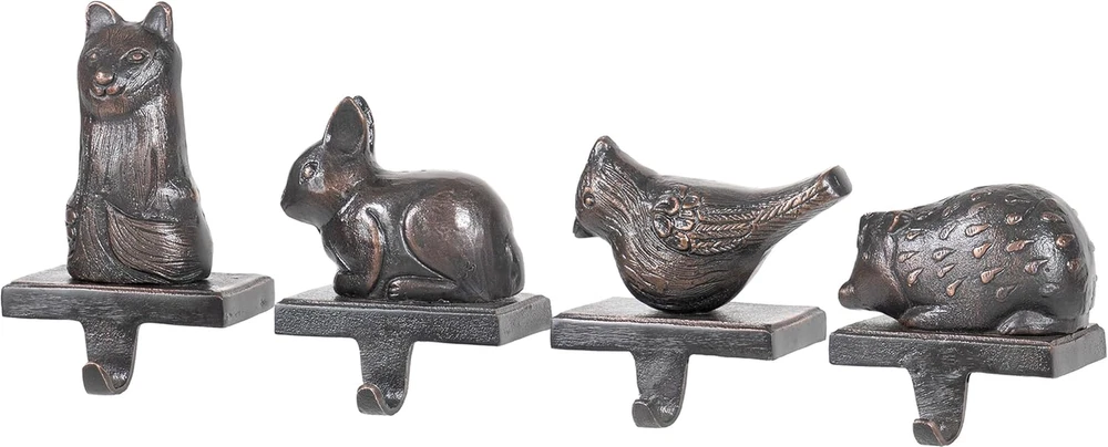eBay Set of 4 Decorative 5" to 8" Cast Iron Stocking Holders with Hook, Old Bronze – Christmas Animals Description Item model number STOCK-ANIMAL-SETOF4 Item dimensions L x W x H 19 x 2.75 x 8 inches Batteries required No Product Dimensions 19 x 2.75 x 8 inches Material Cast Iron Country of Origin India Item Weight 7 Pounds Color Old Bronze Specific instructions for use Home, Indoor, Outdoor, Gifts, Ornaments, Display, Decoration, Office Number of Pieces 4 Included Components Hook Featuring charming animal designs of a fox, bunny, cardinal bird, and hedgehog, these stocking holders bring a unique rustic charm to your holiday décor Ideal for holding stockings, garlands, or other festive decorations on mantels, shelves, or ledges, adding a functional and decorative touch Their classic design complements a range of home decor styles, including rustic, farmhouse, traditional, and vintage, seamlessly blending with your holiday setup Made from sturdy cast iron, these stocking holders are built to last and can securely hold filled stockings Dimensions: 4.75” L x 2.75” W x 3.5” to 6.5” H, with a 1.5-inch hook for secure stocking placement Transform your holiday decor with this 4-piece set of stocking holders, featuring charming animal designs: a fox, bunny, cardinal bird, and hedgehog. Each holder is crafted from sturdy cast iron with a distressed bronze finish, adding a unique rustic charm to your festive decorations. Built to last, these stocking holders can securely support filled stockings without tipping over, blending both functionality and whimsical appeal. Ideal for holding stockings, garlands, and other festive adornments, they complement various decor styles, making them a versatile and charming addition to your holiday setup. Designed with a wide and heavy base to sit firmly on your fireplace mantel, it requires no additional tools for installation. Just place it on a flat surface and hang ornaments, wreaths, twinkling lights, tinsels, garlands, and especially stockings at Christmastime. ABOUT US We offer the best prices around on high quality products. Our E-store includes media such as books, movies, music and games while offering electronics, toys, sporting apparel, clothing, tools, general home, garden items and more. SHIPPING We are always working hard to ensure your package arrives as soon as possible. Please understand that some factors like weather, high postal traffic, and the performance of shipping companies are outside of our control. We offer free shipping to the lower 48 states and ship within 2 business days of payment, usually sooner. We do not accept P.O. Boxes. Please provide a physical address. For shipping outside of the continental USA, we only use eBay's Global Shipping Program.The item is shipped to KY and then sent to the rest of the world. International customers are responsible for all duties and taxes. Continue to check out in order to calculate costs for shipping the item to your country. Messages regarding eBay's Global Shipping Program MUST be directed at eBay EXCLUSIVELY. RETURNS We offer a 30-Day Return Policy on items which you are not completely satisfied with. You have the option for a full-refund or an exchange of the item. No returns are available on items shipped outside of the USA. PAYMENT We accept PayPal. CONTACT US This page content is yet to come Please ad us to your favorite seller and visit again later Thank You CUSTOMER SATISFACTION We try our very best to make sure every customer is completely satisfied. If there's a problem, message us! We're happy to help. WE ACCEPT Copyright © 2021 AutoDS. | All Rights Reserved