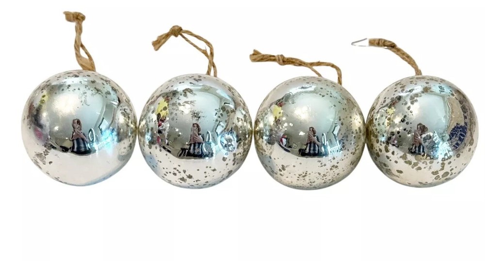 Add a touch of vintage charm to your Christmas tree with this set of 4 glass mercury ball ornaments. These silver crackled Kugel style ornaments are perfect for any holiday occasion and will add a festive touch to your home decor. Hang them on your tree or display them year-round to show off your seasonal theme. The set includes four ornaments and features a unique pattern that will make them stand out among other ornaments. Get ready to impress your guests with these beautiful ornaments that will bring a touch of elegance to your home. Smoke free home Please visit my store at https://www.ebay.com/str/theuniqueredhead . Thank you for your consideration. Please message me if you have any questions. I do combined shipping on my items in the store.