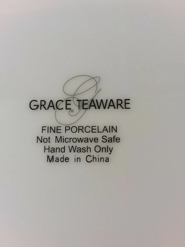 Set of 4 Graces Teaware 10 1/2" Dinner Plates, Amethyst and Gold Border Hand Wash Only Beautiful Amethyst (Deep Purple) border trimmed in Gold I also have the matching Peacock Salad Plates, item # 315571215429 A beautiful addition to your table setting I will do combined shipping if you buy any other of my other items. The bright white spots in the photos are just reflections from the lights Comes from a clean, smoke free, pet free home Buy with Confidence - see my feedback Check out my eBay store for more amazing items