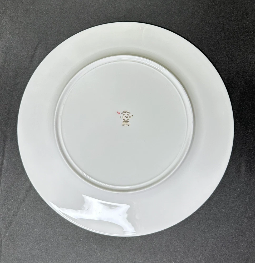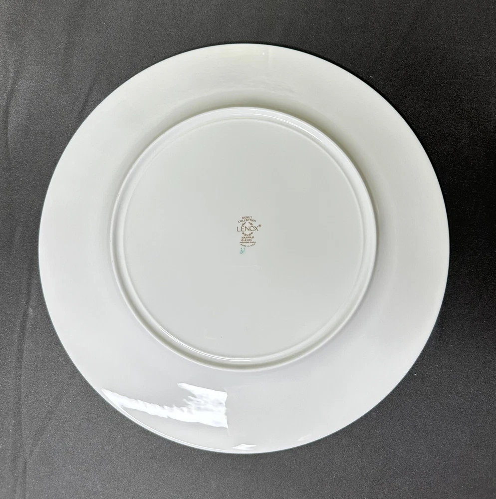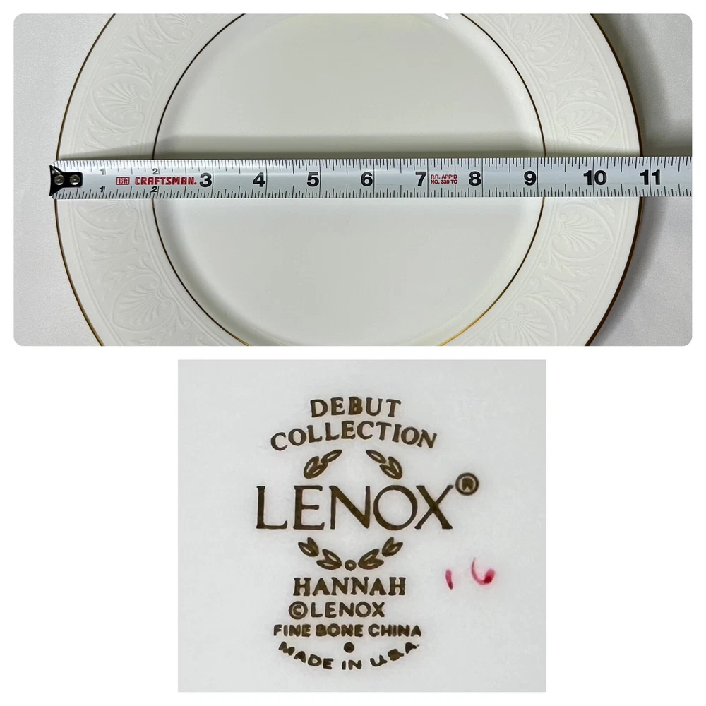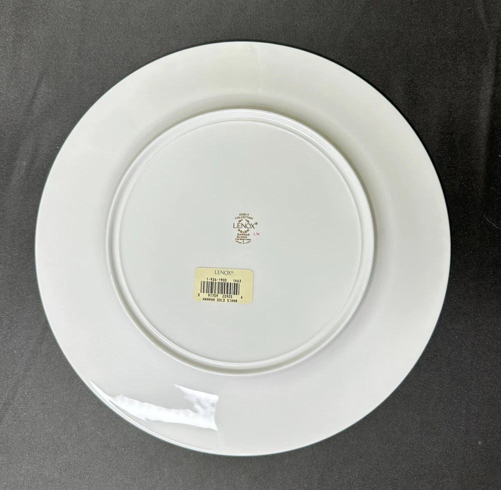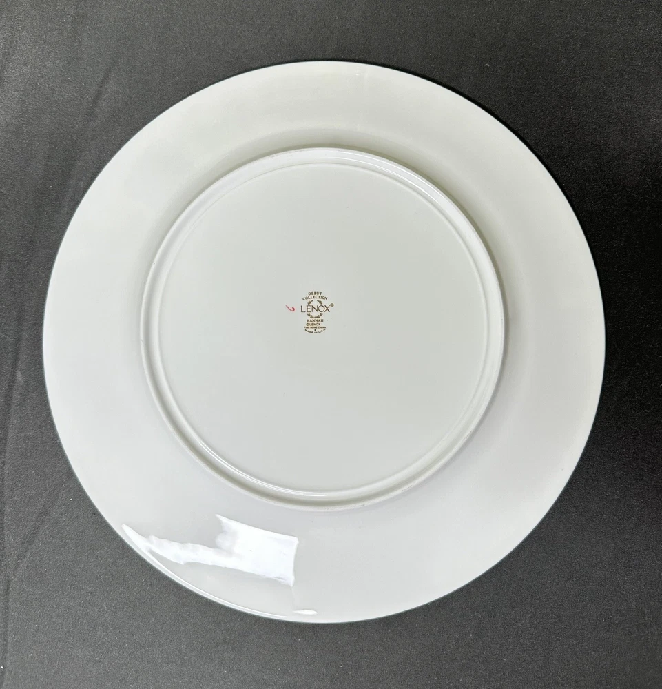 Set of 4 Lenox Hannah Gold Debut Collection Bone China Dinner Plates. Approximately 10 7/8” wide. Plates are in excellent pre-owned condition.