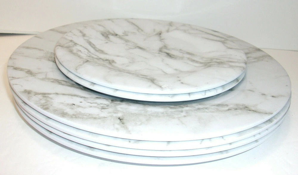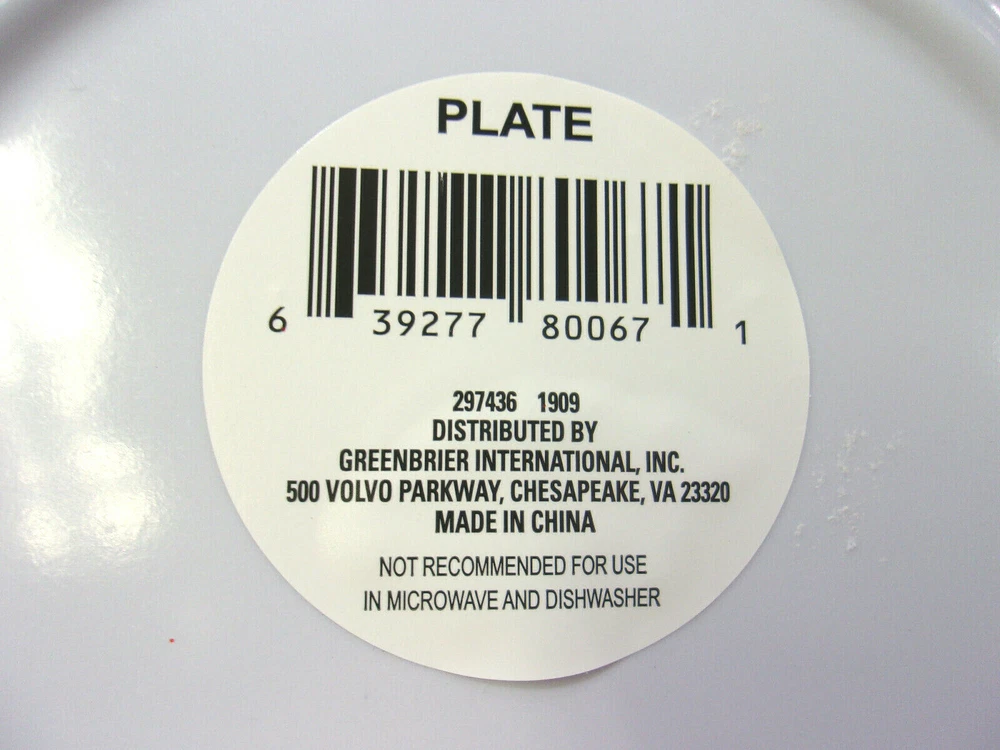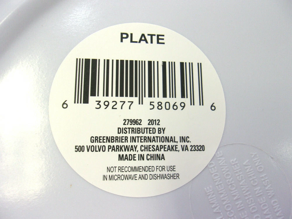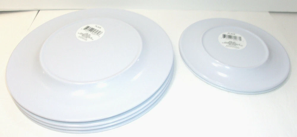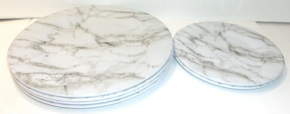 Set of 4 "Marble" Look Lightweight Melamine Dinner Plates + 2 Bonus Salad Plates Description: The listing is for a Set of 4 pieces Melamine 10.5" Dinner Plates by Greenbrier International, all new with tags. You will receive 2 Bonus (free) 8.5" Salad Plates with the purchase. They are suitable for indoor and outdoor use. These dinnerware are made of lightweight material and are break resistant with reasonable use and care. Please ask any questions you may have. Thank you for shopping with us. Measurements: Dinner Plates - 10.5" diameter Salad Plates - 7.5" diameter Care Instructions: They could be dishwasher safe on the top rack, but are not safe for microwave oven. Wash with gentle dish detergent and avoid harsh chemicals such as bleach, alcohol etc Shipped by UPS Ground Seller's Ref: #1360 GD01-07031522