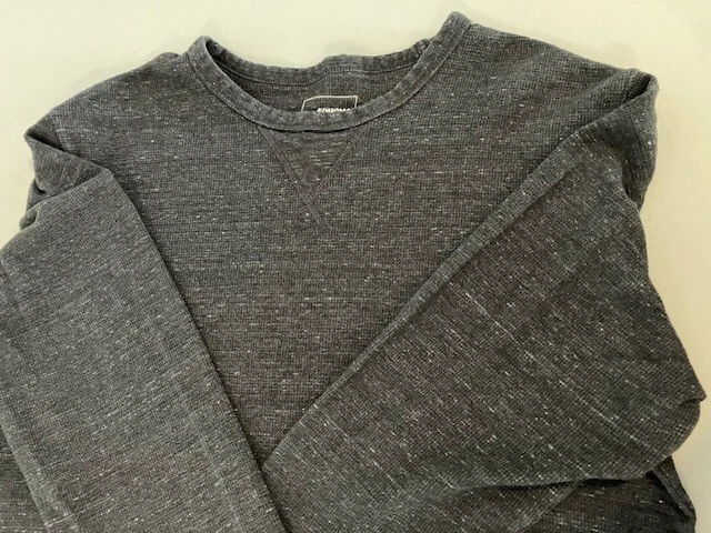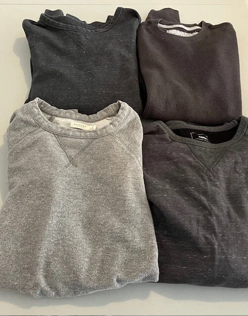 Set of 4 Men's Long Sleeve Shirts- Includes Urban Pipeline Dark Gray Thermal Shirt- Size L- 60% Cotton/40% Polyester; Sonoma Dark Gray Flecked Thermal Shirt- Size L- 60% Cotton/40% Polyester; Sonoma Dark Gray Flecked/Black Double Knit Shirt- Size L- 50% Rayon/30% Cotton/20% Polyester; Sonoma Light Gray Sweatshirt- Size L- 69% Cotton/20% Polyester/11% Rayon. In good condition for age and use. No rips or tears. No stains. See Photos.