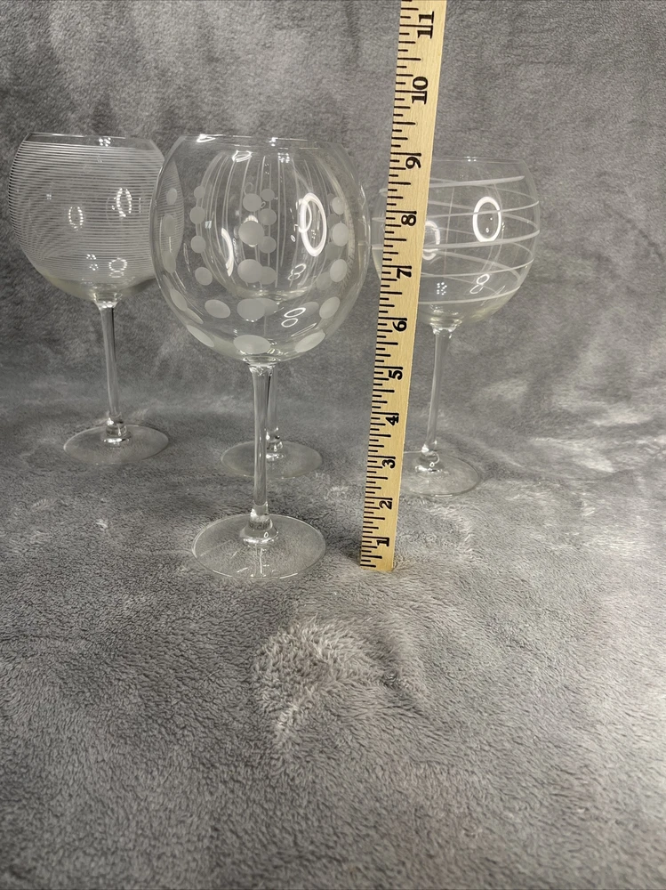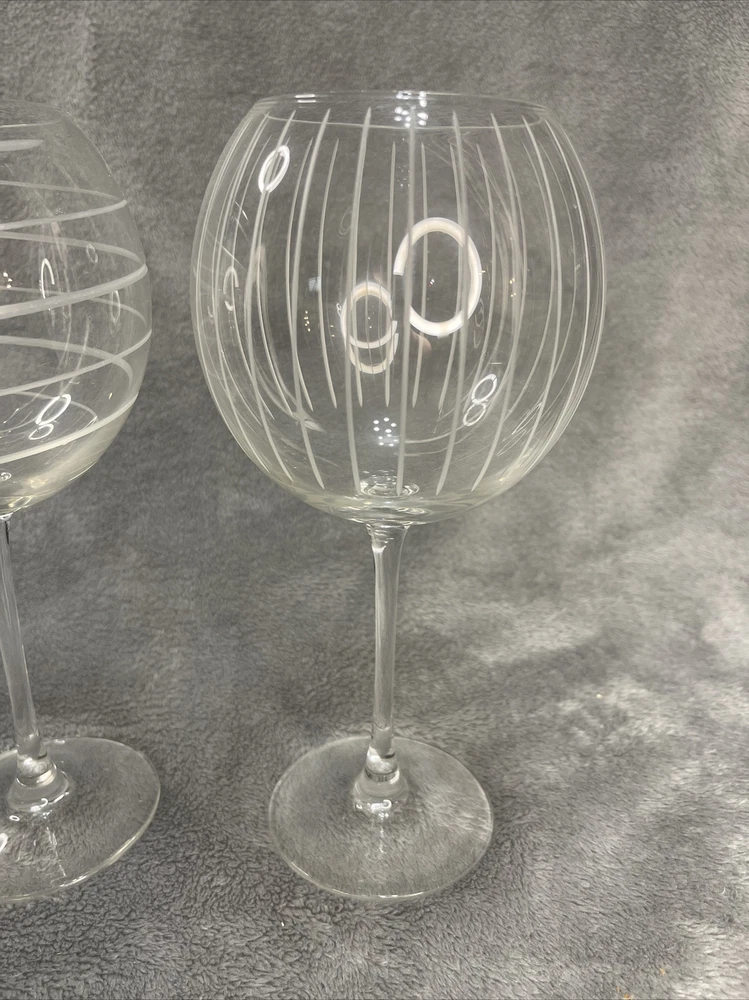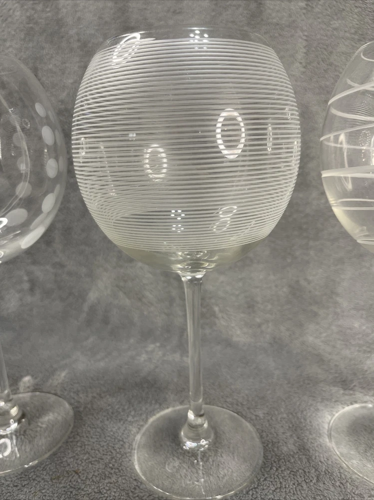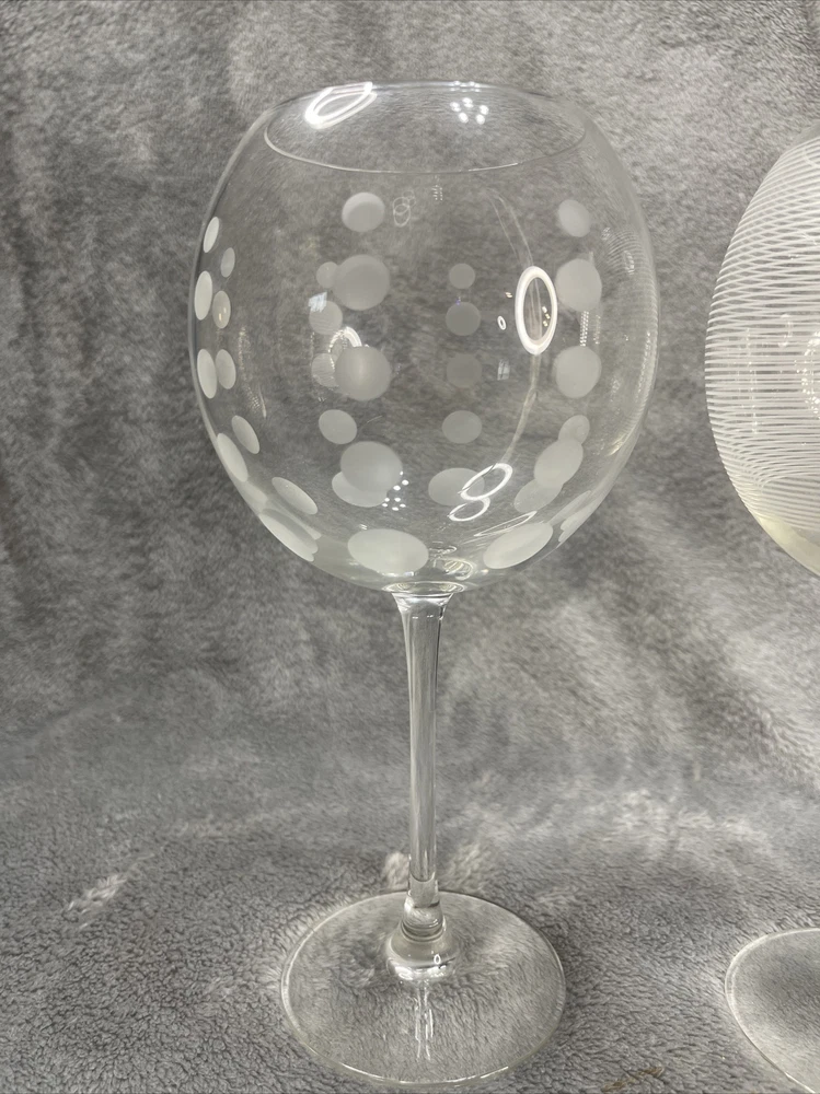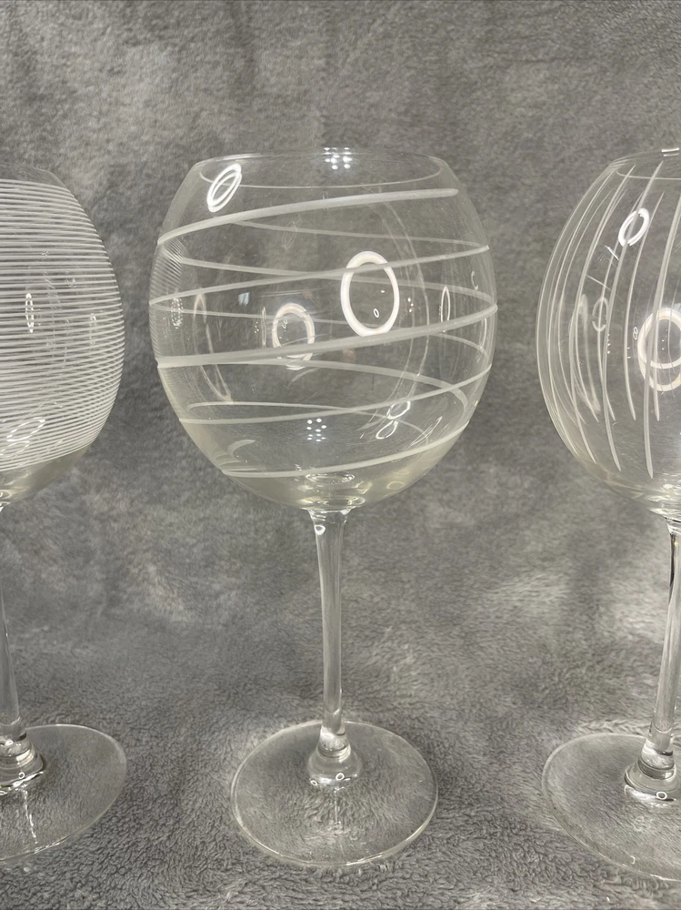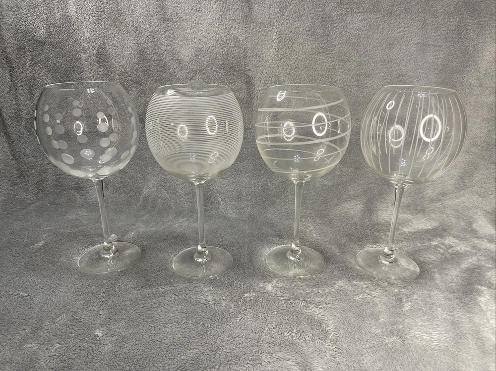 Set of 4 Mikasa Cheers Spiral Dotted & Lined Balloon Wine Glasses