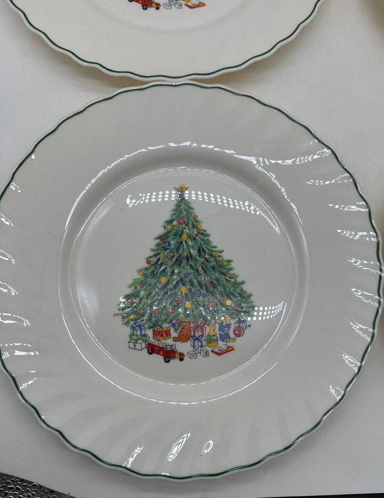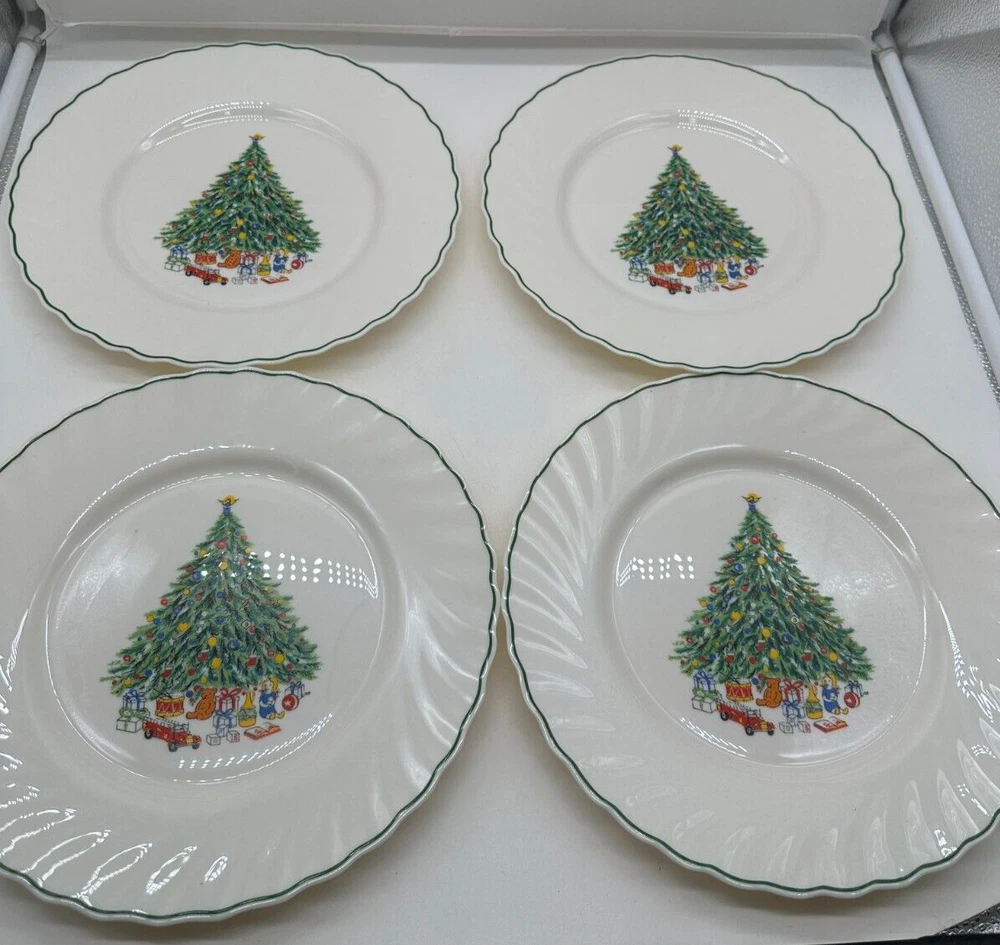 Set of 4 Noel Porcelle 10.5" Plates White w/ Christmas Tree The House of Salem