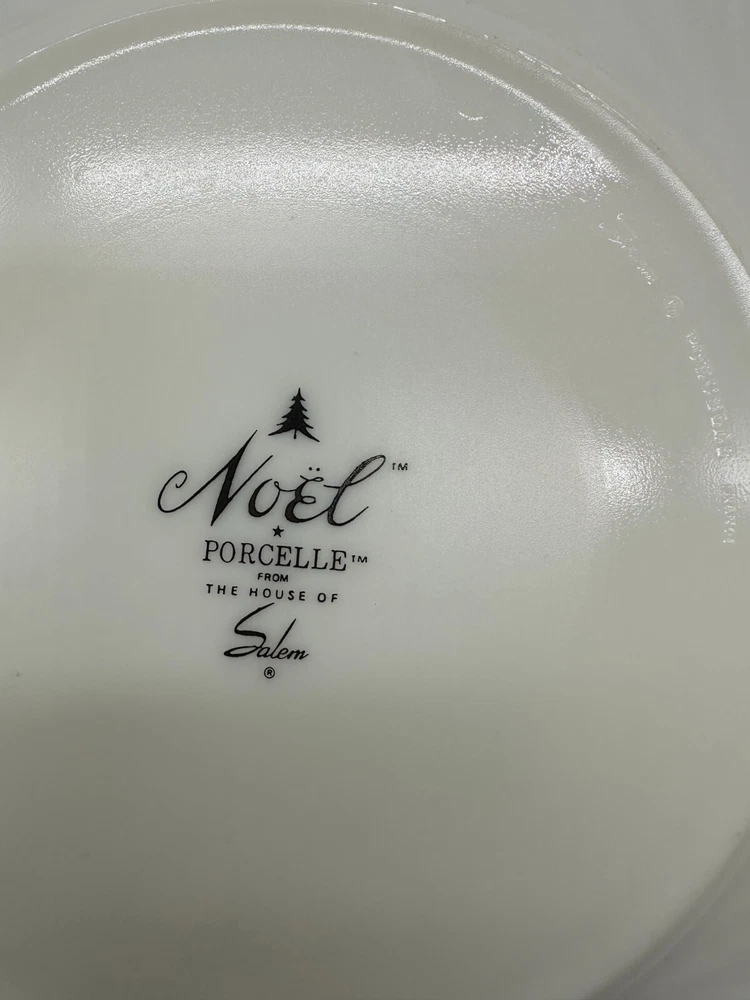 Shape: Round Features: Decorative, Heritage, Souvenir, Stackable Country/Region of Manufacture: France Occasion: Christmas Finish: Glossy Product Line: Noel Time Period Manufactured: 1980-1989 Era: Late 20th Century (1970-1999) Set Includes: Bowl Set, Dessert Plate, Dinner Plate, Plate Set Theme: Christmas Handmade: No Vintage: Yes Production Style: Fluted Porcelain China Color: White Number of Items in Set: Four-Piece Type: Dinner, Dessert Plates, Bowl Set Brand: House of Salem Pattern: Christmas Tree Backstamp: Printed Style: Retro Original/Licensed Reproduction: Licensed Reproduction Seller Notes: “Used in great shape, showing minimal signs of use if any” Material: Porcelle Origin: France