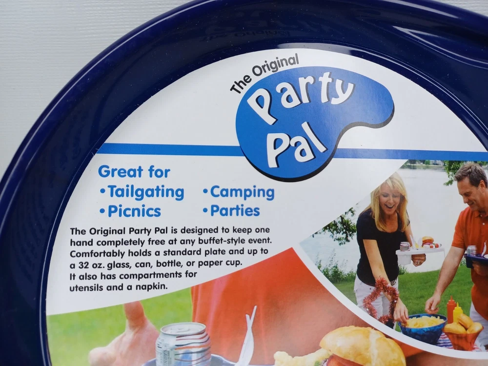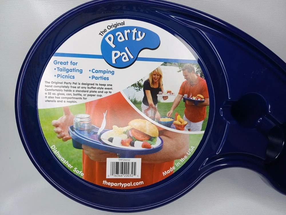 Get ready for your next party with the Original Party Pal for Camping Game Day Party Tray Tailgating Two Pack! This set includes two durable plastic plates in a solid blue color, perfect for any occasion. Whether you're hosting a camping trip, game day party, or tailgate event, these plates are a must-have. With the Partypal brand name, you can trust that these plates are made with quality materials and will last throughout your entire event. The two-pack set is perfect for sharing with a friend or family member, and the non-vintage design is sure to impress your guests. Add these plates to your party supply collection today! Brand new still with original packaging! Sold as a two pack, you will receive 2 PARTY PALS. Any questions let me know!