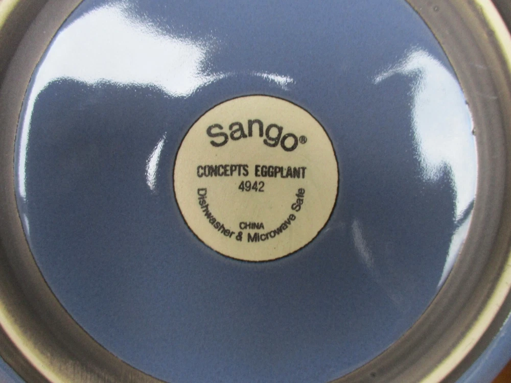 Seller Notes:“PRE-OWNED. EXCELLENT CONDITION.”Set Includes:Salad PlateHandmade:NoBrand:SangoEra:21st Century (2000-now)Material:StonewareTime Period Manufactured:2010-2019Care Instructions:Machine Washable up to 140°FBackstamp:PrintedColor:White/BlueItem Length:naManufacturer Warranty:naPlate Diameter:8 1/2"Shape:RoundVintage:NoFeatures:Dishwasher Safe, Microwave SafeNumber of Items in Set:Four-PieceCountry/Region of Manufacture:ChinaProduction Style:Art PotteryPattern:Concepts EggplantMPN:N/AFinish:Lead-Free GlazeAntique:NoProduct Line:sangoItem Width:naUPC:Does not applyStyle:EmpireTheme:eggplantType:Salad PlateItem Height:naProduction Technique:PotteryItem Weight:naOriginal/Licensed Reproduction:OriginalOccasion:All OccasionsOrigin:Americagtin13:Does not apply