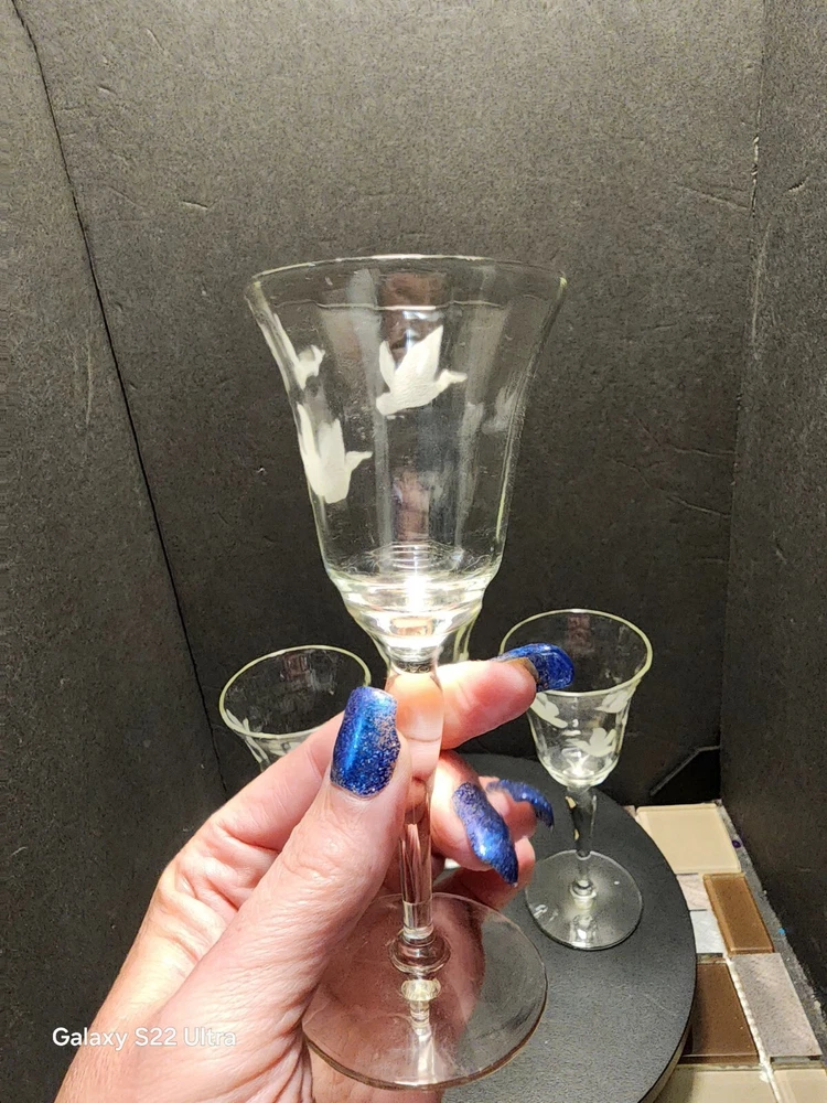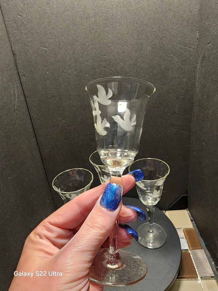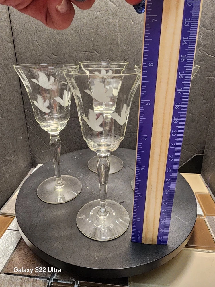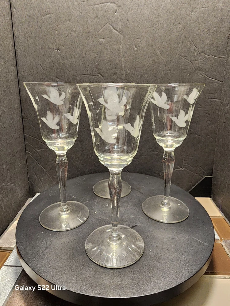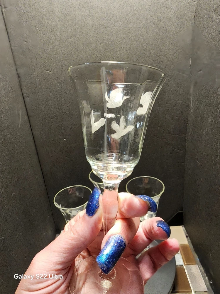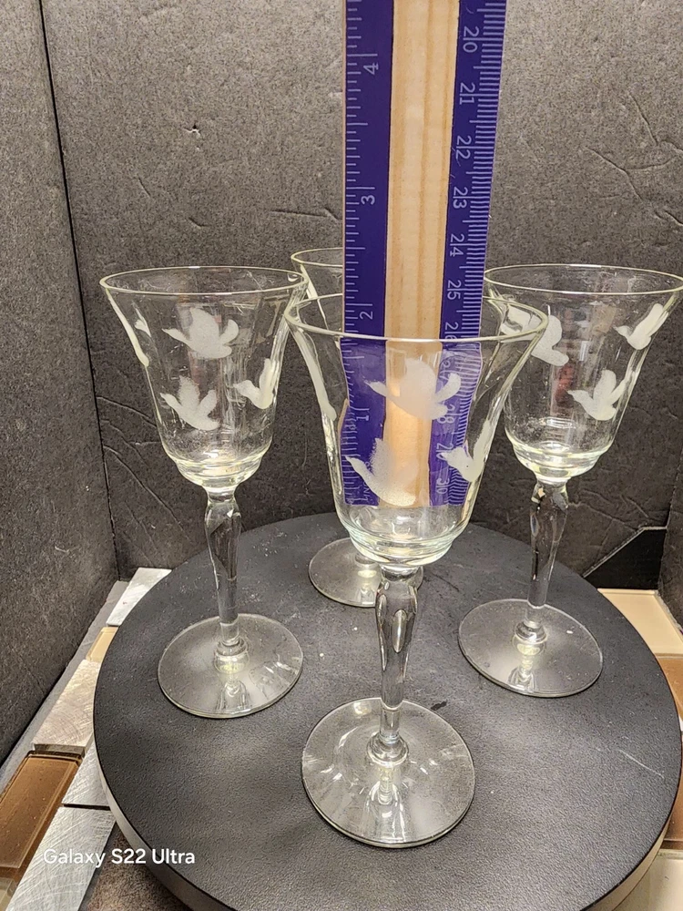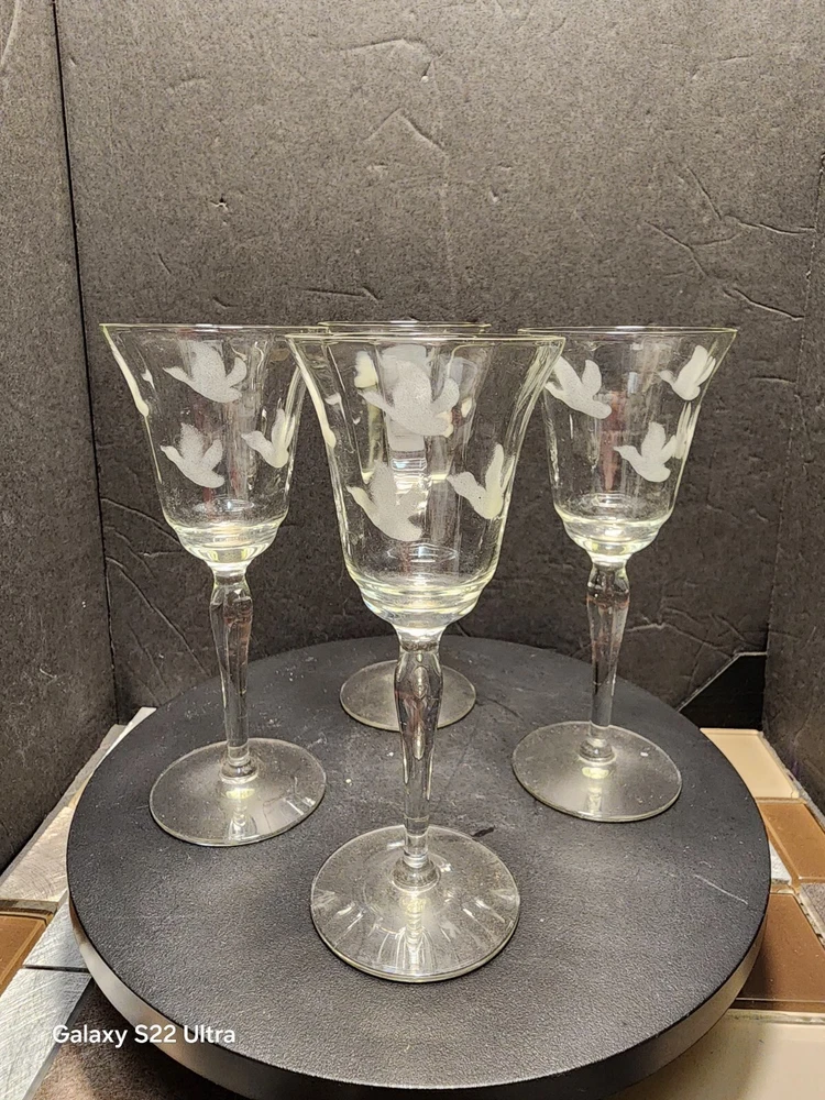 Add a touch of vintage charm to your drinkware collection with this set of four Art Deco bird etched crystal wine and spritzer glasses. The intricate etched designs of these glasses make them a stunning addition to any table setting and perfect for any occasion. Crafted from high-quality crystal, these glasses are durable and elegant, making them a great investment for any home bar or collection. The set includes four glasses, each featuring a unique bird design, adding a touch of personality to your drinkware.