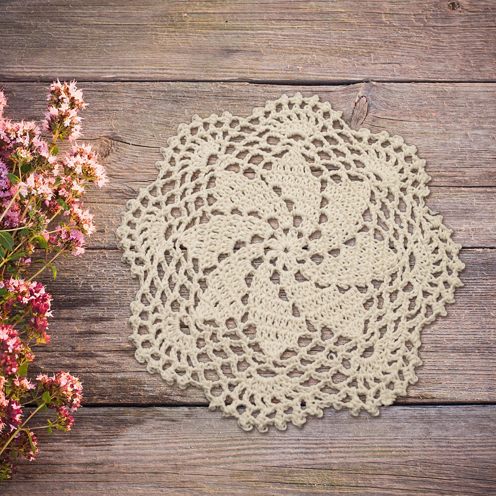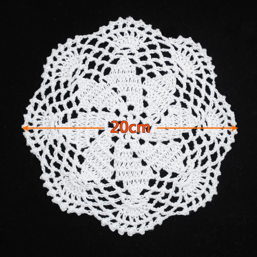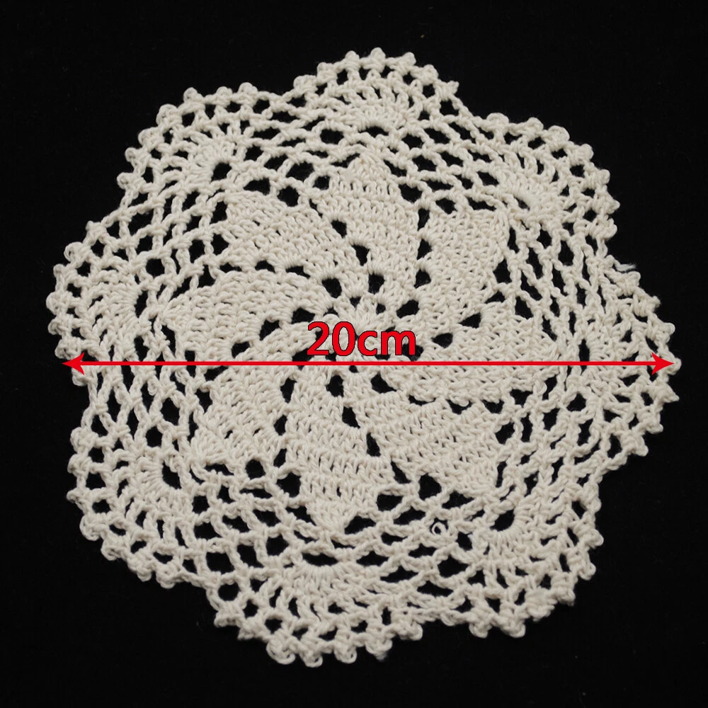 Specifications: Material: Cotton Shape: Round Color: White,Beige Craft:Hollow-out,Purely Handmade Cleaning Mode: Can be washed in the washing machine Style: Countryside Vintage Apply: It's popularly used as decorative cover towel, such as home dining table,cafe shop furniture,hotel,restaurant book shop and more. Can be used as the photo props background decoration tool. A DIY material,can be used to decorate your Handicraft. Package Includes: 4 x Doilies Notice: 1.About the color,due to different light,computer screen and batch,there may be some difference between the picture and actual item. 2.Please allow 0.5-1cm size deviation as they are handmade.