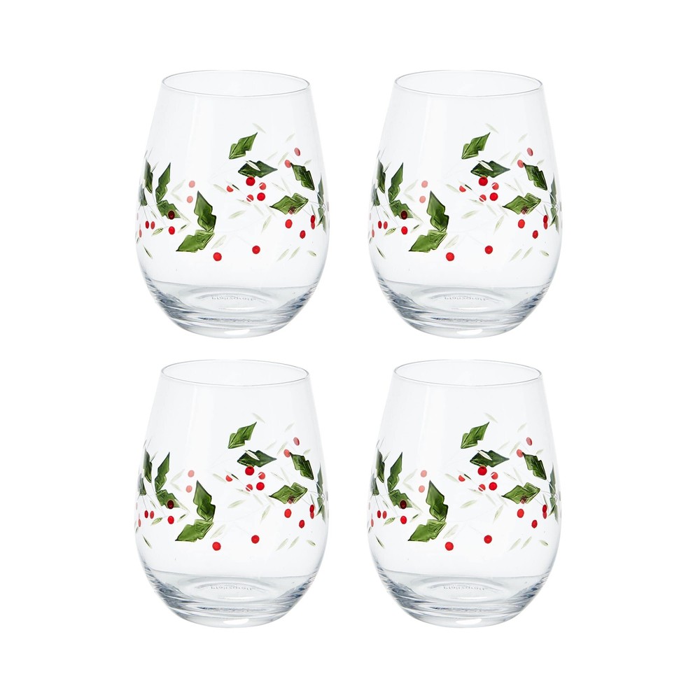 As fall turns to winter, bright holly berries make their appearance, and the Winterberry collection is the holiday classic that brings this timeless motif to life in elegantly sculpted dinnerware and serveware, beautiful glassware, and joyous giftware. This set includes 4 stemless wine glasses with the popular Winterberry motif. These sophisticated etched wine glasses are perfectly shaped for the maximum appreciation of bouquet, flavor and finish. Many experts prefer stemless glasses for the full enjoyment of either red or white wine. Create your ideal table setting with a full range of coordinating Winterberry dinnerware and serveware. This product is not dishwasher safe. Hand wash with warm water and a mild detergent. This set includes 4 stemless wine glasses with the popular Winterberry motif. These sophisticated etched wine glasses are perfectly shaped for the maximum appreciation of bouquet, flavor and finish. Many experts prefer stemless glasses for the full enjoyment of either red or white wine. Create your ideal table setting with a full range of coordinating Winterberry dinnerware and serveware. This product is not dishwasher safe. Hand wash with warm water and a mild detergent.