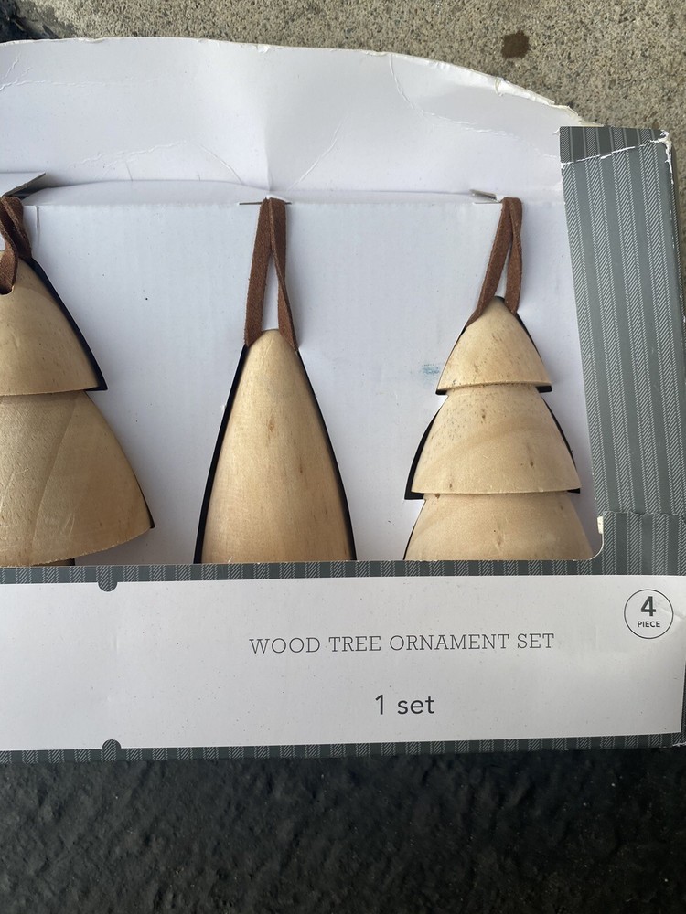 Wood ornaments set of 4 box is damaged sold out collection Track Page Views With Auctiva's Counter