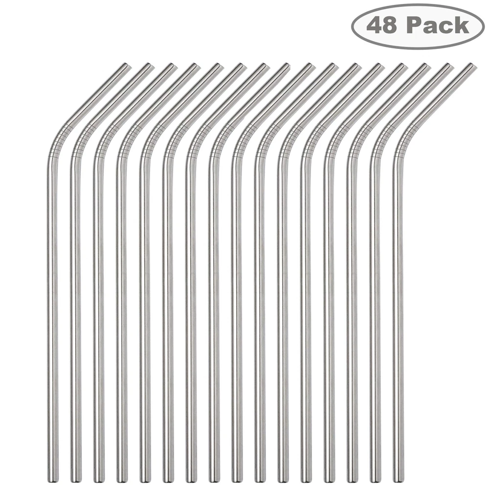 Package includes: 48pc x 10.5 inch bent straws Made of food grade 18/8 stainless steel, these straws is reusable,clean and environmental friendly,a perfect replacement for your plastic straws.trendy for family reunion,girl's night out,cocktail party,perfect for on-the-go, kitchen, BBQ, picnics, party favors, boating as well all around the house, or out on the patio! Specifications: Material:18/8 food grade stainless steel Length:Extra long 10.5 inches,best fit for 30oz tumblers Outer Diameter :1/4 inch/6mm Set of 48pcs Stainless Steel Metal Straws, 48pc bent-10.5'' metal straws fit your 30oz stainless tumbler,compatible with most popular brands including Yeti, Rtic, Bubba, Ozark, Klean Kanteen and Tervis. 18/8 FOOD GRADE STAINLESS STEEL - BPA and lead free,Dishwasher Safe, No metal aftertaste, Colorfast, Plastic free, Reusable and Environmentally Friendly. ECO-Friendly: As a safe and suitable alternative to plastic, they are safer for the environment. one set of stainless steel straws can be used for years to replace hundreds or thousands of plastic straws, which reduce waste and white pollution. odern and sleek stainless straws add fun to any party, trendy for family reunion,girl's night out,cocktail party,Patio BBQ,picnics,boating and more Great gift choice for your families and friends.