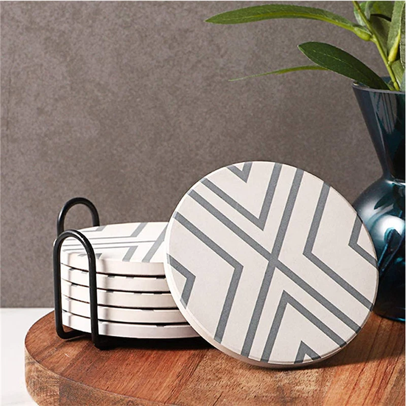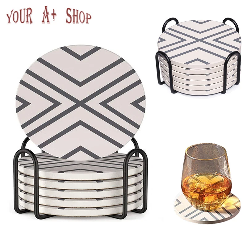 Set of 6 Ceramic Coasters with Holder Marble Drink Coffee Tea Cup Pad Mat Decor Package Included: 6 * Ceramic Coasters 1 * Coaster Holder Description: 1. The Great Gift's Choice Cool tones marbled pattern with 6pcs set, these funny coasters is great gift as housewarming and home decoration. 2. Coaster Holder Included Set of 6 marbled coasters come with a black metal coaster holder that neatly stack your coasters in this sleek coaster holder to save the space and keep them organized. The sleek coaster holder is made of ferrous metal, resistant to pollution and scratch. 3. Strong Water Absorption Ceramic Made of natural cork cornerstone absorbing ceramics, absorbant ceramic top helps to capture moisture in cold or hot drinks. Also doesn't stick your glasses and keep it dry, protect cups or mugs surfaces and easy to clean. 4. Non-Slip Cork Base The cork bottom of the coaster is an environmentally friendly cork base that prevents slipping and keeps the coasters in place. Non-slip feature will not slip even on a smooth table, also protects your furniture or tabletops from scratches or scuffs. 5. Suitable Size 4 inch(100mm) diameter size drink coasters suitable for most commercial type of cups, coffee cups, bowls, kids' drinks, sports bottles, craft cocktails and tumblers. A great accessory for your home, kitchen, living room, bar, wodden table, etc. Little Tips: If coffee or dark drink splashed on the coaster, we recommend you to wash the coaster with water immediately. Specification: - Coaster Size: 4.13" (diameter) x 0.27" (thickness) / 10.5 cm x 0.7 cm - Packing: Bubble Bag Inside + White Box Outside - Packing Size: 4.8" x 4.8" x 2.6" / 12.2 cm x 12.2 cm x 6.8 cm - Packing Weight: 1.4 lb / 630g Note: -Due to manual measurement, there will be an error of +/- 5 mm. -Due to the shooting angle and the display, the goods may have a color difference from the picture. Guarantee • Fast & Free Shipping on ALL Orders We believe that you should enjoy the benefit of FREE Shipping on all of your orders within the all Continental States. That's why no matter what you buy, we will ship it for FREE, so the price you see is exactly what you pay. No hidden fees or shipping charges. • Most Items Delivered in 2-6 Business Days When you're buying from us, you deserve fast and reliable service. That's why we have a "Same Business Day" processing in place and wide range of shipping options to choose from in order to deliver your package as soon as possible. *2-6 business days time-frame is NOT GUARANTEED and was statistically calculated based on all previous orders. • ALL Orders Placed On Business Days Before 4 PM EST Will Be Shipped Same Day Why wait a day or more for your order to ship? All orders placed before 4 pm EST, Monday-Friday, ship the SAME day. Orders placed on Friday after 4 pm EST, Saturday and Sunday will be shipped the next Monday (if business day). We are closed on all Federal Holidays. • 30 Days Money Back Guaranteed! We will gladly accept your return within 30 days of the original purchase. Please, see below for our full Returns Policy. Shipping Details • Most orders arrive at your door in 2-6 Business Days FOR FREE! • Place your order before 4 pm EST and it will be shipped the same day, Monday – Friday, excluding major holidays. • We will ship your order to your PayPal Verified address provided. • Please verify your address and make sure that it is your current address before making your payment. Any address change requests after your payment CANNOT be guaranteed. • We do not include invoice with our shipments. Feedback • Positive feedback is automatically done once your order is shipped. • We appreciate all our customers to post a Positive Feedback and "Five-Star" scores. • If for any reason you are not satisfied with your purchase. Please contact us via eBay Message and We will do our best to satisfy you! Payment & Order Cancellation • Instant PayPal payment is required. • We also accepts Visa, MasterCard, Discover, and American Express through PayPal guest checkout. • Sales tax is charged for California State orders. • To uphold a shipping speed, your order will be processed almost immediately. If you change your mind after your payment is confirmed, we will do our best to stop the order, however, we CANNOT guarantee the cancellation. Returns • We will gladly accept your return within 30-Days of the original purchase. • Our return process is simple and fast: 1. We will pay for the return shipping label if you received a broken/defective item(s) or the item(s) doesn't match our description. As soon as we receive the item(s) back we will process a refund for the item(s)which was/were returned. 2. You will be required to pay for the return shipping label if you changed your mind or no longer need the item(s). As soon as we receive the item(s) back we will process a refund for the item(s) which was/were returned. • If we'll receive a package back because of the incorrect address, the refund will be processed excluding our shipping cost. Contact Us • Send us a message on eBay and we will answer within 24h on business days.