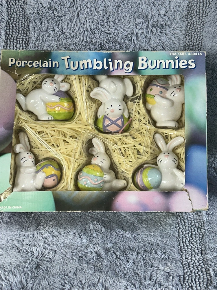These adorable porcelain bunnies bring so much Easter cheer! The playful tumbling poses and vibrant colors make them stand out beautifully. The quality feels premium—each bunny is carefully crafted with sweet details. Perfect for mantels, shelves, or as a centerpiece, they instantly brighten up the holiday decor. Love that it’s a set of six, giving plenty of options to arrange. A festive must-have for bunny lovers!