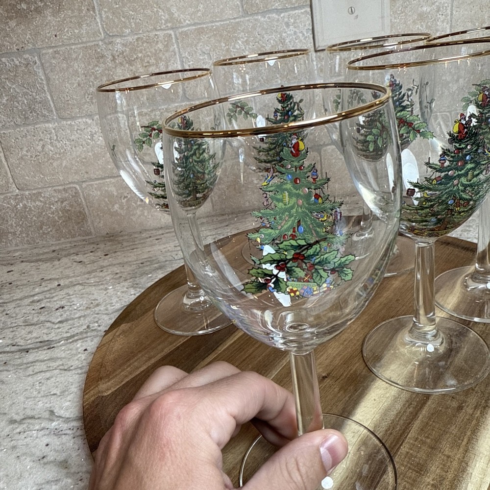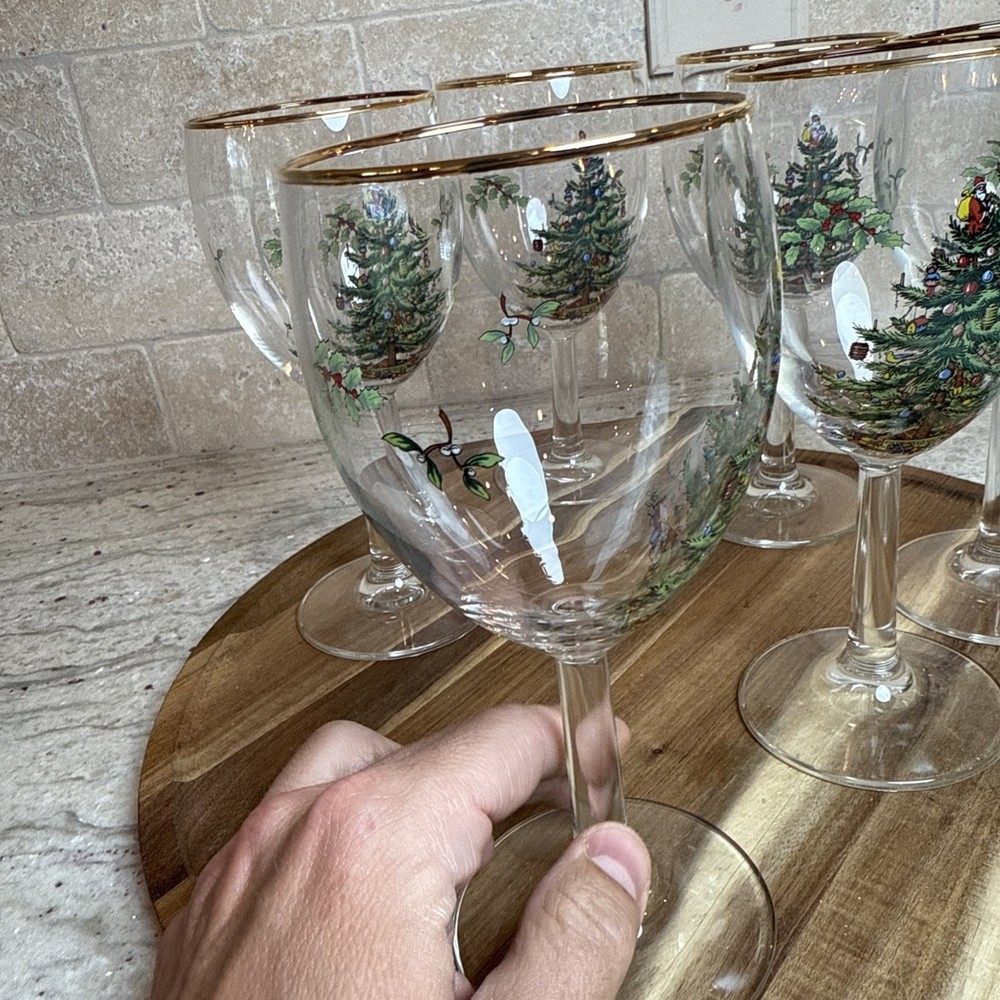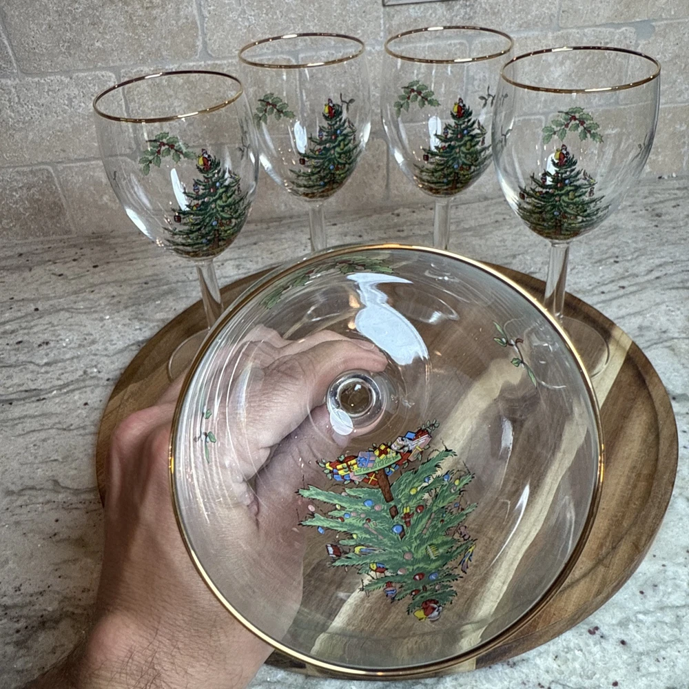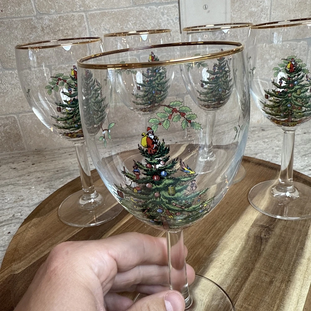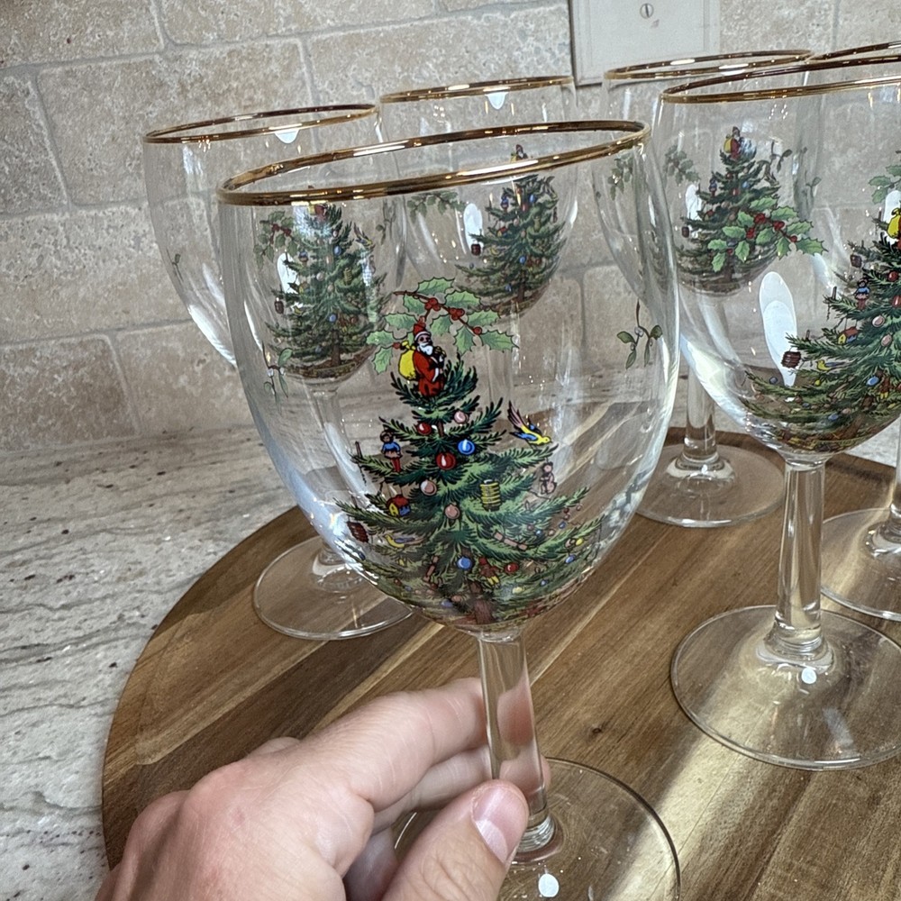 Spode Christmas Tree Stemmed Water Goblets 5-Piece Set