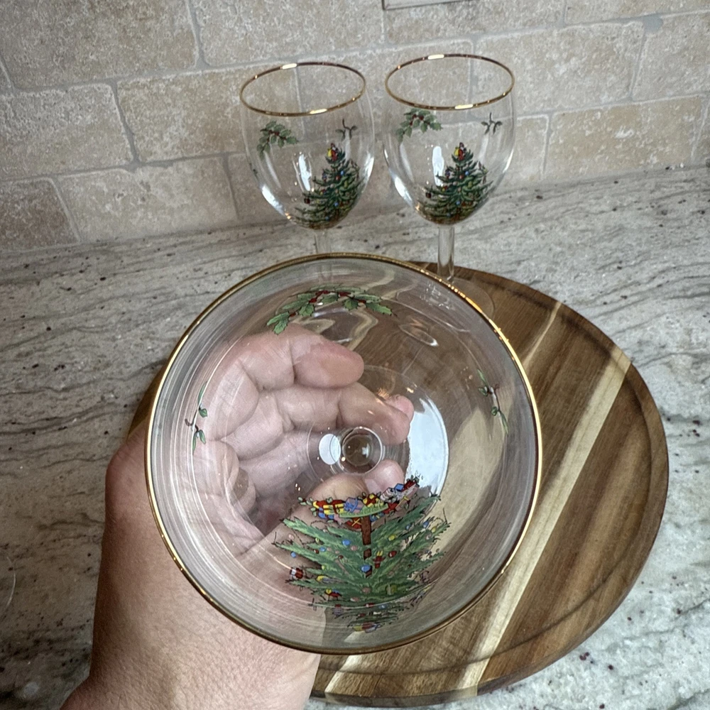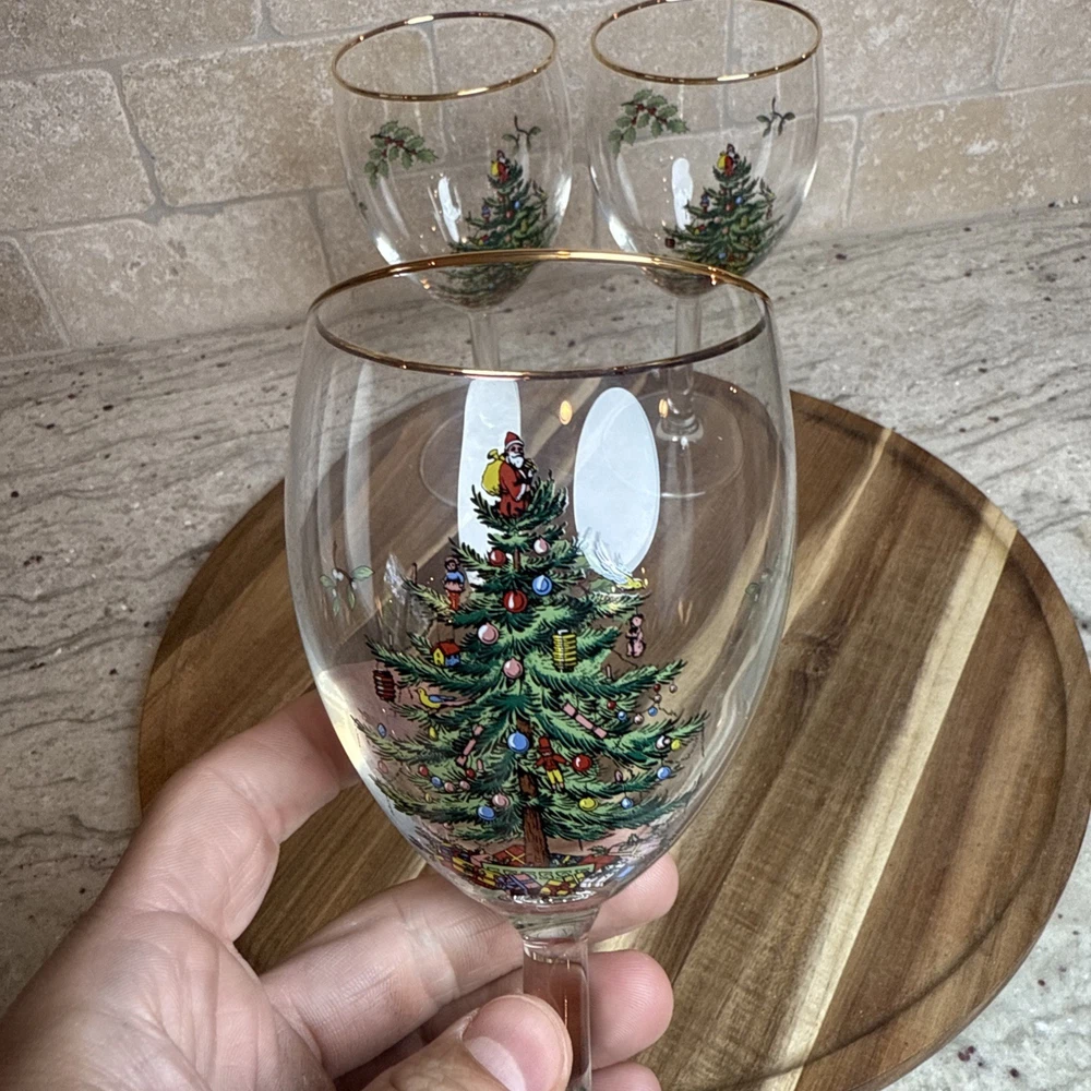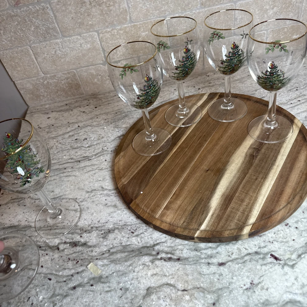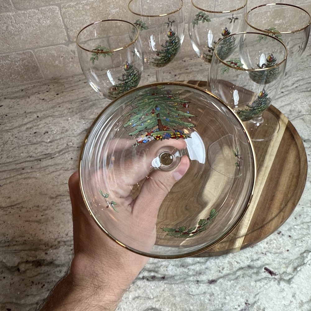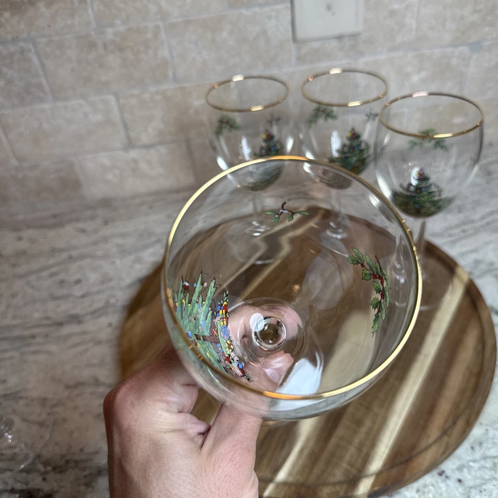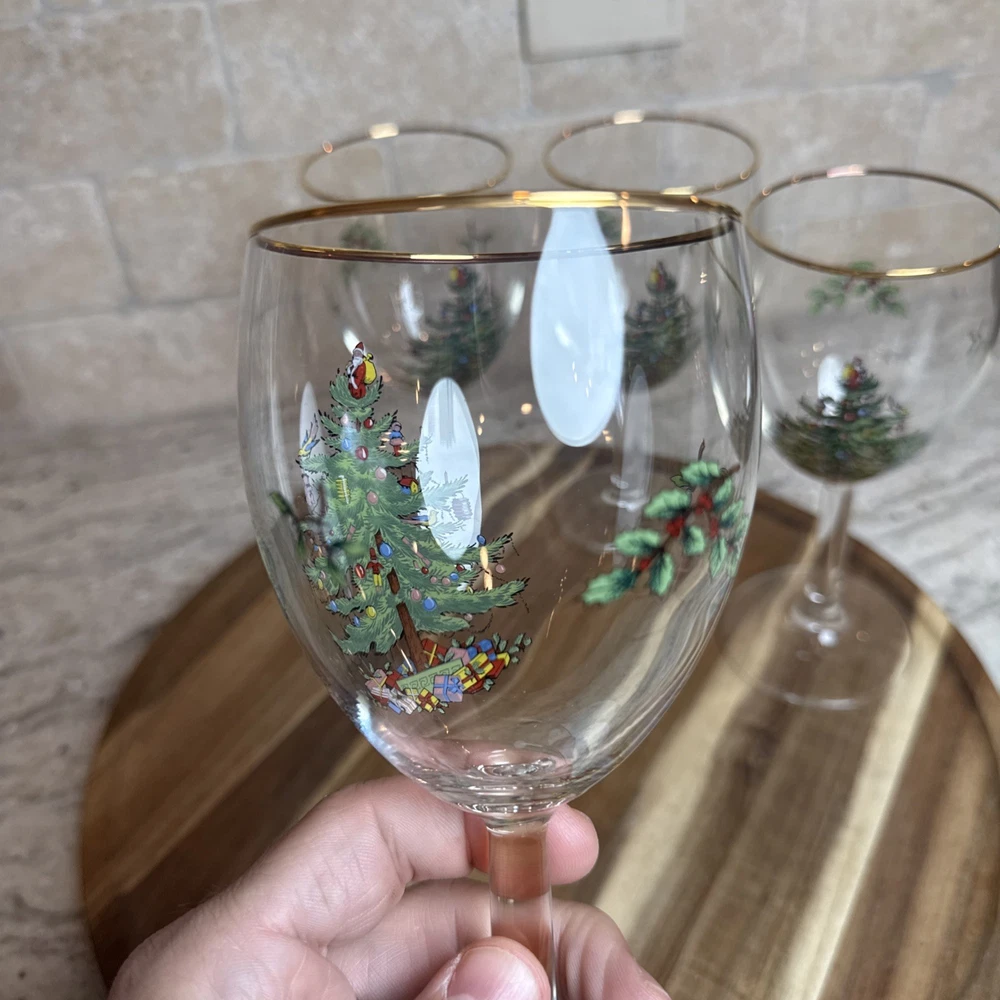 Spode Christmas Tree Stemmed Water Goblets 5-Piece Set