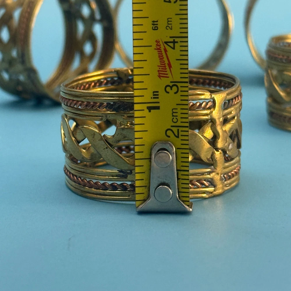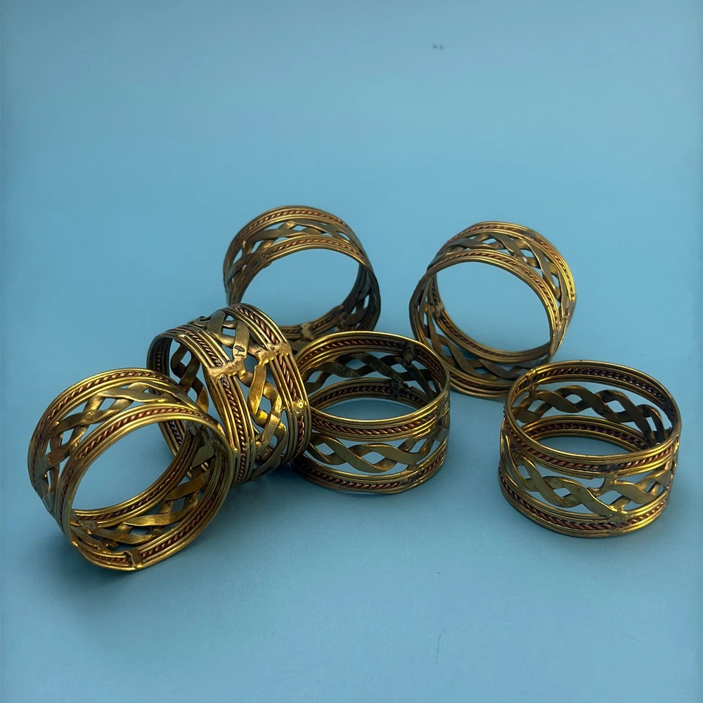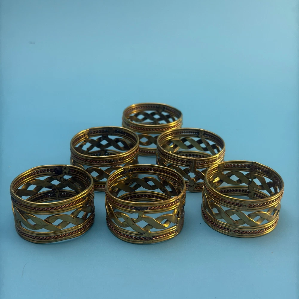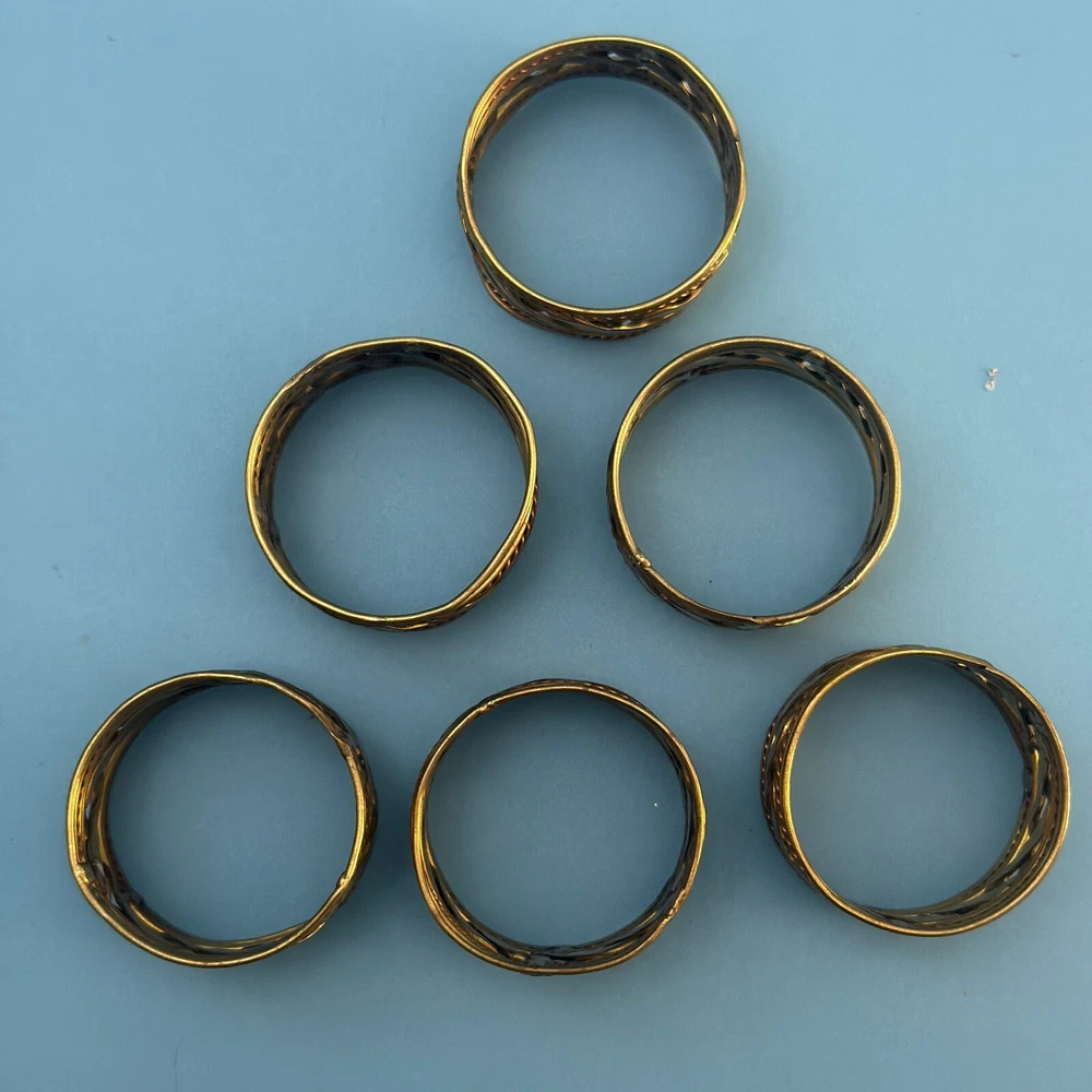 Set of 6 Vintage Brass Napkin Rings Holders - Elegant Decorative Design. Pre-owned in good vintage condition with minor signs of wear, including light scratches. The brass retains its warm tone, adding charm and character. Please review the photos for details. The pictures are of the exact item you will receive. Please check the photos for more details. Please note that this item might have a slight smell of smoke due to storage and the cardboard box used for shipping. We take great care in cleaning and carefully packing the item to minimize any potential odors. Additionally, we prioritize fast shipping to ensure the item arrives quickly and in excellent condition. If you have any concerns, feel free to contact us before purchasing. Thank you for your understanding!