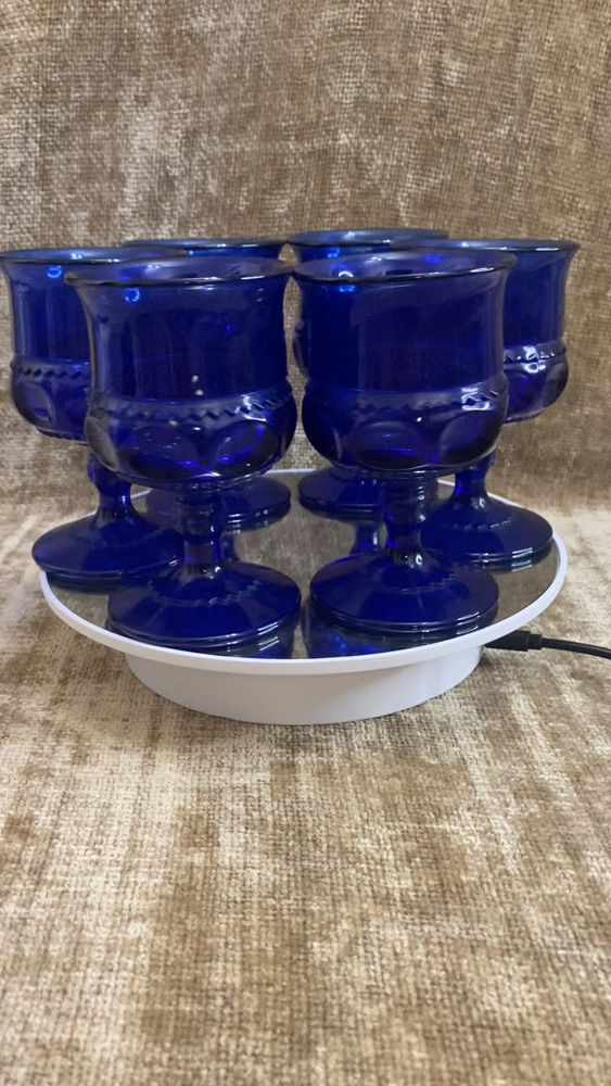 Set of 6, Vtg Kings Crown Cobalt Blue Thumbprint Cordial Glasses
