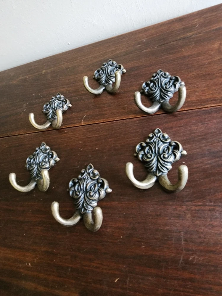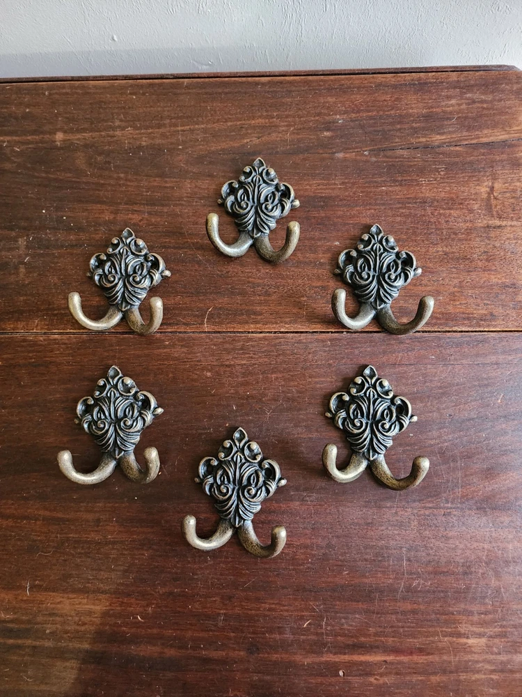 Set of 6 Wrought Iron Metal 2 Peg FLoral Wall Hanging Hook Coat/Towel Gold Tone
