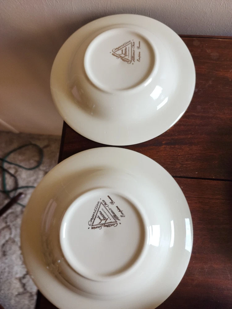 2 bowls have a tiny chip on each one. One bowls has a green spot on the green area. On the back of one has a mark. Please look at all pictures. size 8-3/8 inch