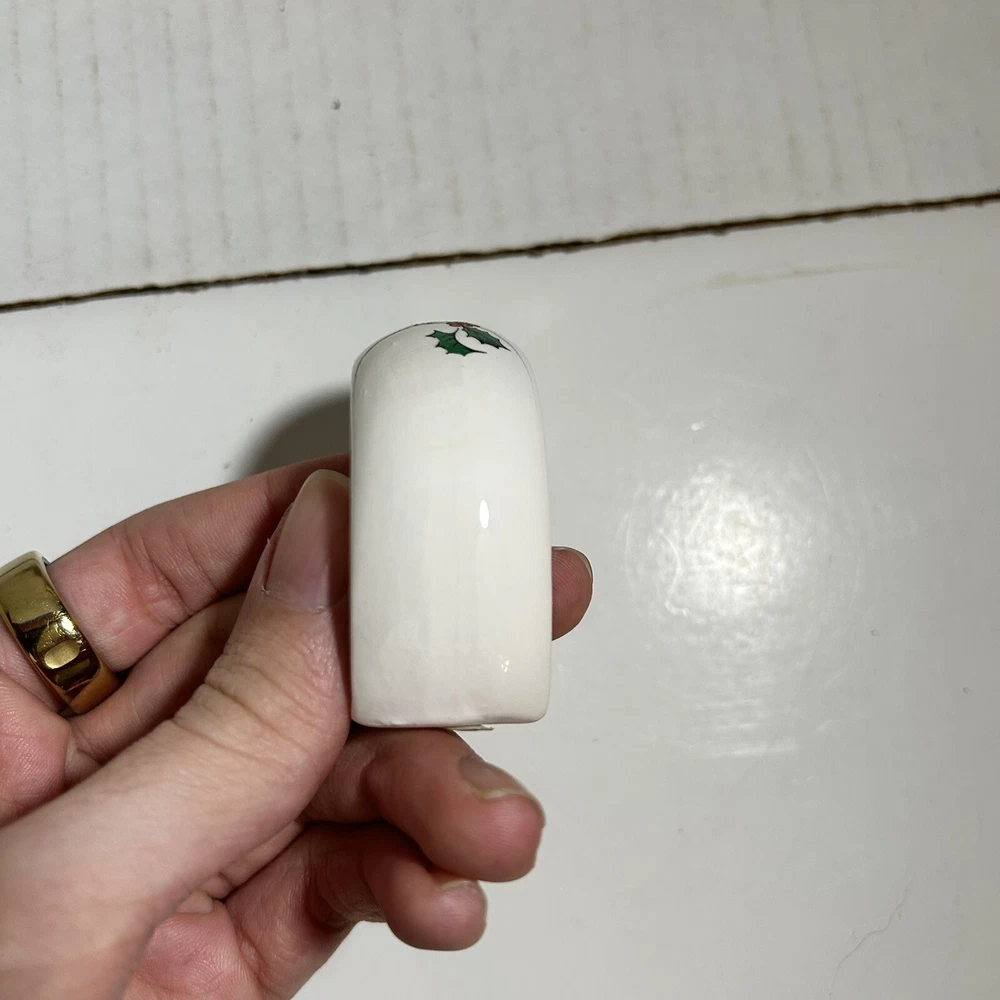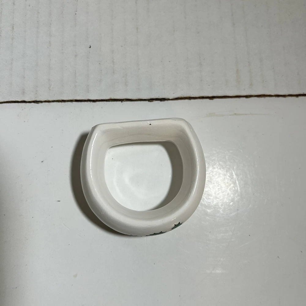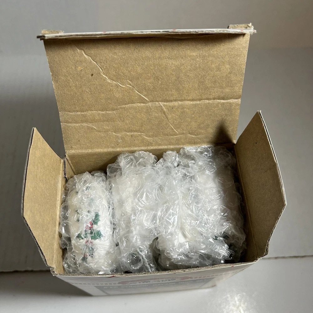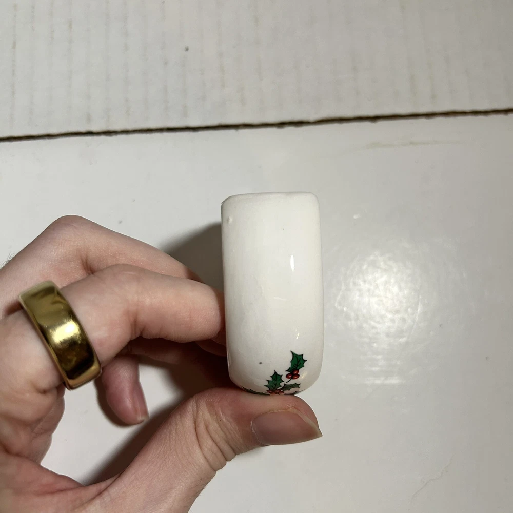 Set of 8 Ceramic Holiday Christmas Holly Napkin Rings are in very good condition, with some minor wear from making but none from use or age as they have been kept in the box and wrapping. Please see Photos for Condition of Napkin Rings. This is a set of 8 holiday Christmas ceramic napkin rings in a white color featuring a holly berry design. The napkin rings are made of porcelain and are in excellent condition, as they have hardly been used. Perfect for adding a festive touch to your holiday table setting, these napkin rings showcase a traditional Christmas theme with their red, green, and white colors, making them ideal for the holiday season.