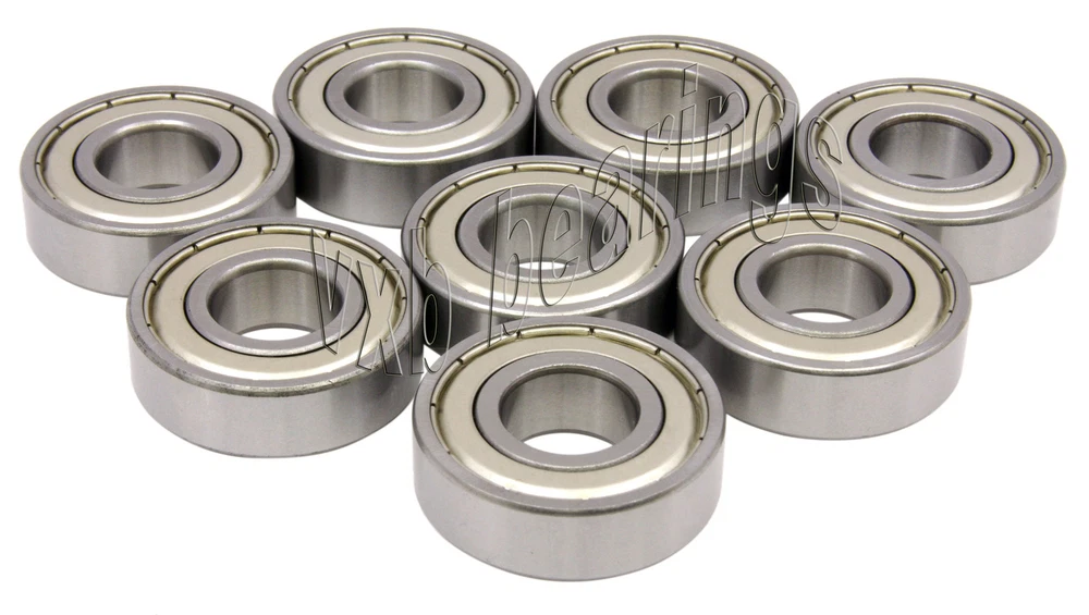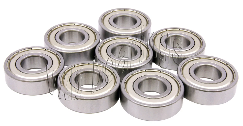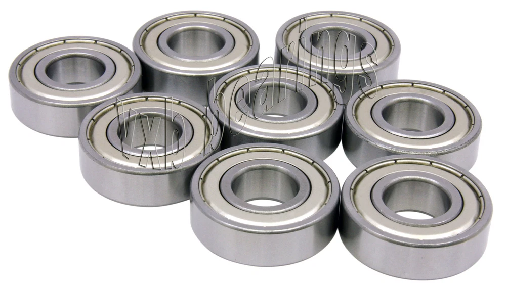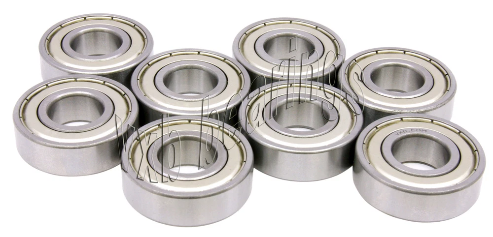 8 Skateboard Bearings 608ZZ Ball Bearings Click on Picture to view Skateboard Ball Bearings 608 ZZ Dimensions: ID=8mm OD=22mm B=7mm Quantity 8 pieces 8 Bearings Packed in a retail box (box is not available).. see picture You are buying a set of 8 Bearings 608ZZ made of Carbon Steel and can rotate up to 34,000 rpm, each bearing has 2 metal shields to protect the bearing from dust or any possible contamination, these are self lubricated bearings (bearings are already greased). Item: 608 ZZ Type: Carbon Steel Deep groove ball bearings Closures: Metal Shielded Quantity: 8 Bearings 608Z Bearing Size: 8x22x7 mm 608ZZ Applications: Skateboards, Roller Blade, Inline Skating, scooter and Rollerblade Other wrong Spellings for bearings: bering, beiring, biering, baering, bairing, berings, beirings, bierings, baerings and bairings Pack#sk8zz