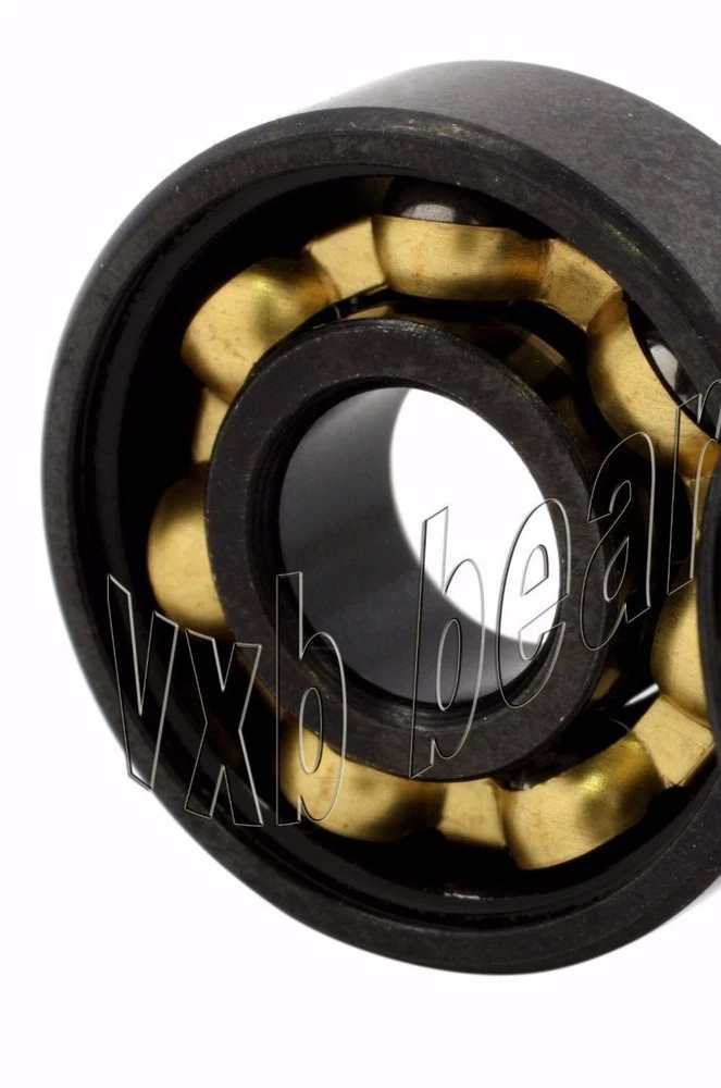 Set of 8 Skateboard Black Bearings with Bronze Cage and white Seals 8mm x 22mm x 7mm/Metric Set of Skateboard Black Bearings, 8 Deep Groove Radial Ball Bearings, bearings are black and have Bronze Cage that would make them faster, bearings have 2 Removable white Seals, Bearings are made of Chrome Steel, each bearing has 2 Removable white Seals to protect the bearing from dust or any possible contamination, also bearings are pre-lubricated with oil. Item: 608-2RS Ball Bearings Type: Deep groove ball bearings Color: Black Closures: 2 Removable white Seals Cage: BRONZE(less friction=higher speeds) Dimensions: 8mm x 22mm x 7mm/Metric ID (inner diameter)/Bore: 8mm OD (outer diameter): 22mm Width/Height/thickness: 7mm Size: 8x22x7 mm Pack#608B-2RS-BRONZE-WHITE Quantity: 8 Bearings Pack#608B-2RS-BRONZE-WHITE