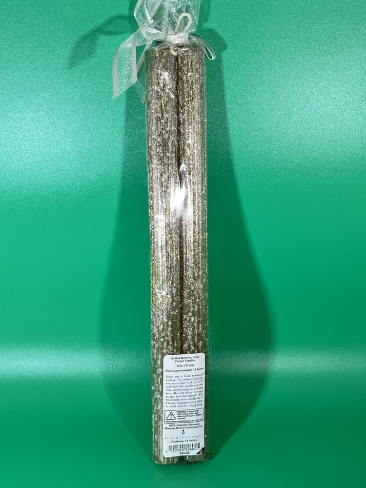 HomeSet of TWO Taper Candles Rolled Beeswax Gold " 12 in. Illuminations New Unopened