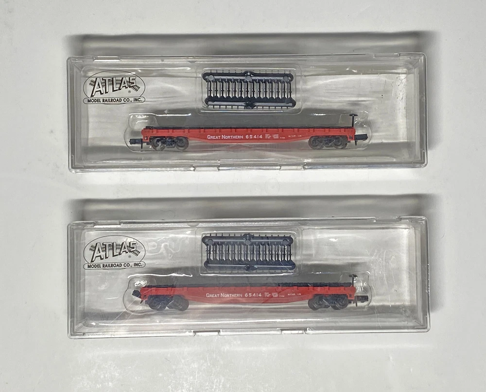 Set of Two (2) Atlas N Scale Great Northern Flat Cars in the original box #3807