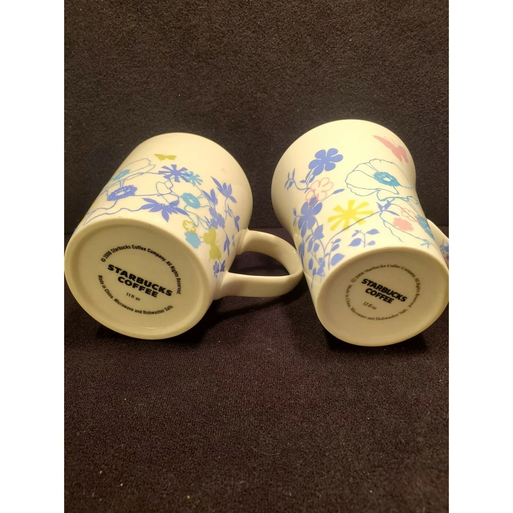 Set of pastel floral print Starbucks coffee mugs, Ceramic. These appear to be from the same collection, so I am selling them as a set. The first one has a uniquely curved handle.