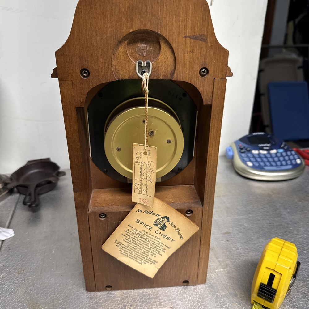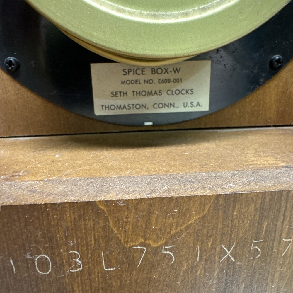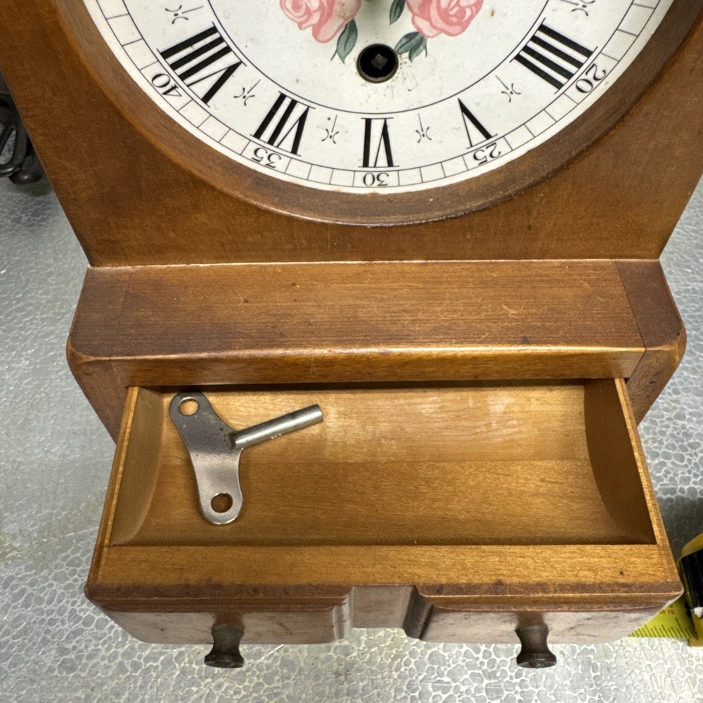 Seth Thomas Spice Chest Rose Wooden Clock With Key And Tag. Condition is Used. Shipped with USPS Priority Mail.