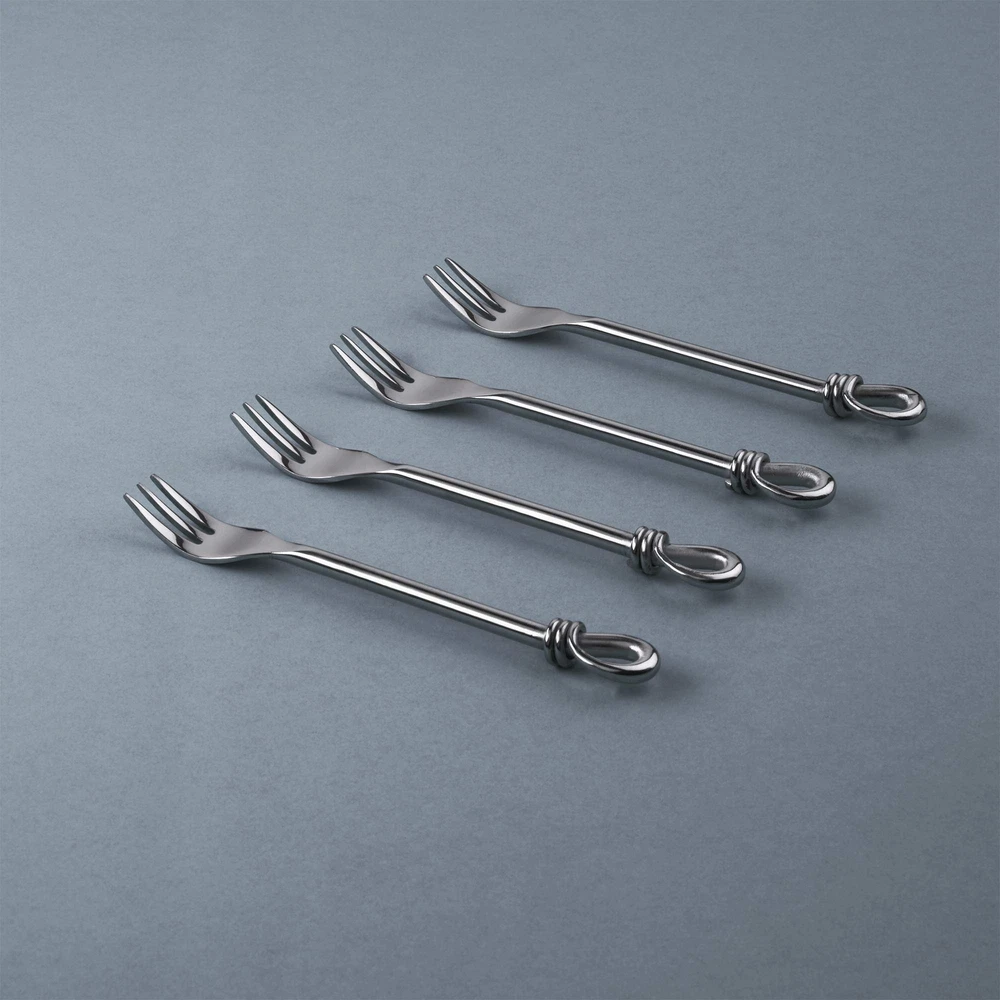Offered is a set of four cocktail forks in the Twist pattern by Settings. Each cocktail fork measures 5 1/2" in length. Crafted of High Quality 18/10 Stainless Steel. Dishwasher Safe. Set of Four - Cocktail Forks Each cocktail fork measures 5 1/2" in length. Crafted of High Quality 18/10 Stainless Steel Dishwasher Safe