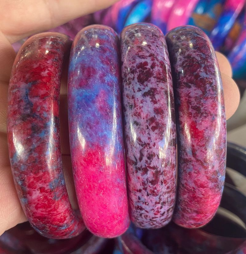 This stunning peach blossom jade bangle is a dream! The soft peacock colors shift beautifully in the light, and the smooth stone feels cool and soothing against the skin. The 56-64mm sizing fits comfortably, and the craftsmanship is flawless—looks way more expensive than it is! Love the positive energy it brings, perfect for daily wear or gifting. Super fast shipping too! Highly recommend!
