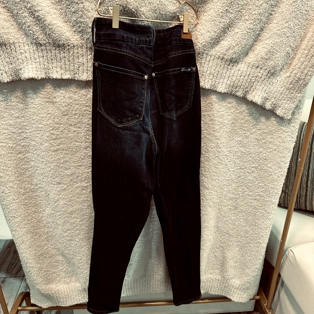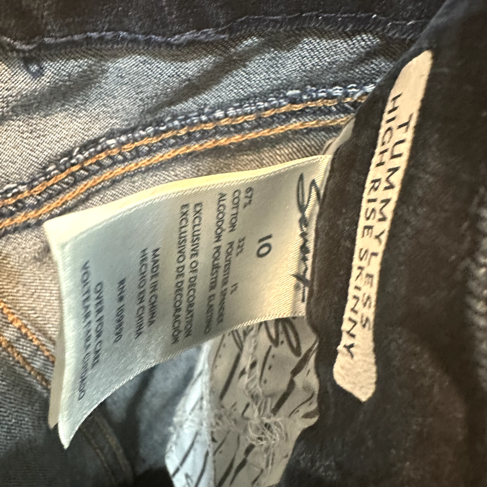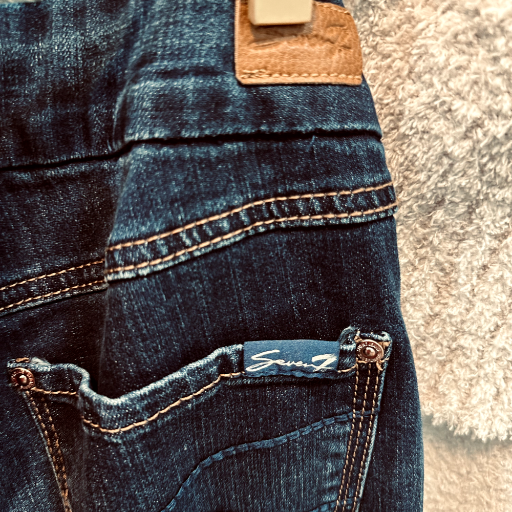 The Seven7 Tummyless Skinny Jeans are high-rise women's jeans in a size 10, made from a denim fabric with a medium wash. These jeans feature a 5-pocket design, a slimming and shaping fit, and offer comfort and stretch for easy wear. The closure options include a zip and button, with accents like buttons and a logo. The tummyless design and skinny fit make them flattering and stylish, perfect for all seasons and versatile styling options.