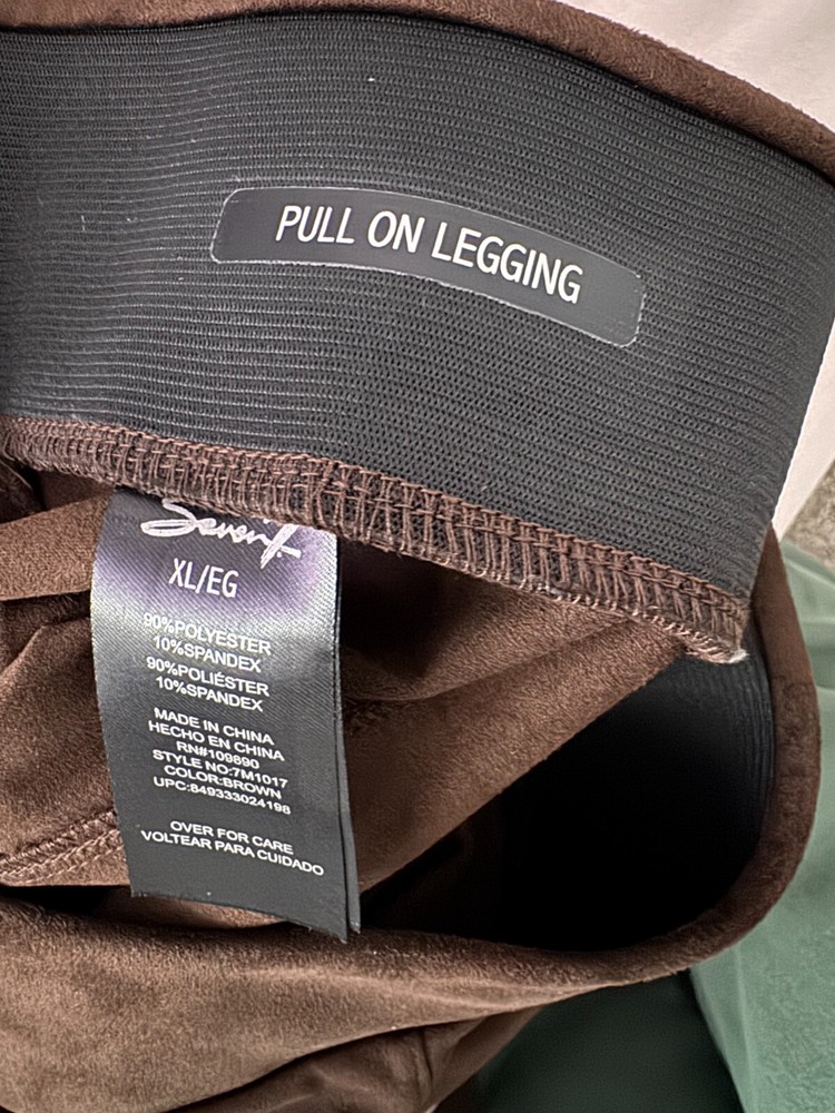 Seven7 Women’s Pull-On Leggings – Faux Suede – Black – Size XL Elevate your look with these chic and comfortable pull-on leggings by Seven7. Crafted in a rich black faux suede, these leggings offer a stylish and flattering fit with plenty of stretch. Brand: Seven7 Size: XL Color: Black Material: 90% Polyester, 10% Spandex Style: Pull-on leggings Fabric: Faux suede Condition: Gently pre-owned – excellent condition No rips, stains, or tears From a smoke-free home Measurements (approx.): Waist: 35" Inseam: 28" Front Rise: 12" Back Rise: 18" These leggings are perfect for both casual days and dressed-up evenings. Comfortable, stretchy, and easy to style. Please feel free to message me with any questions. Thanks for looking!