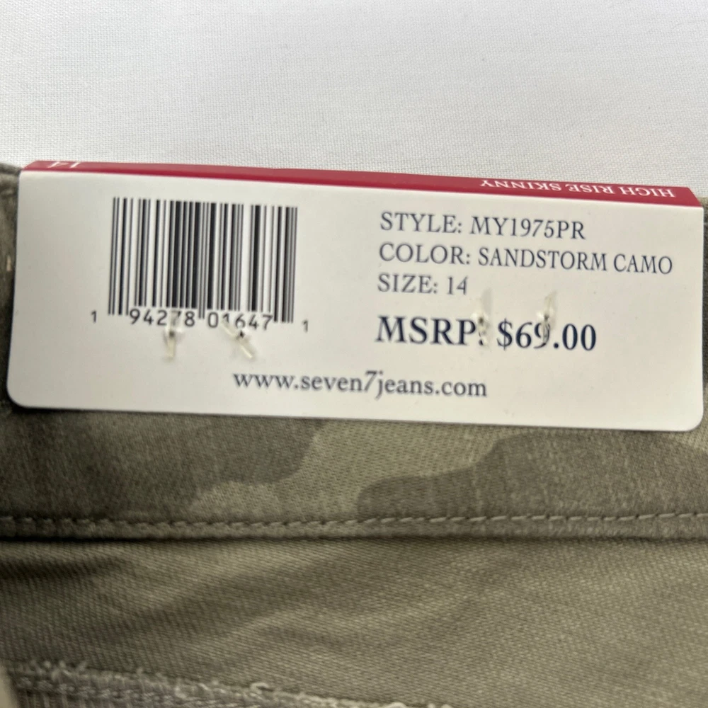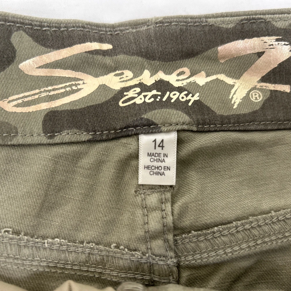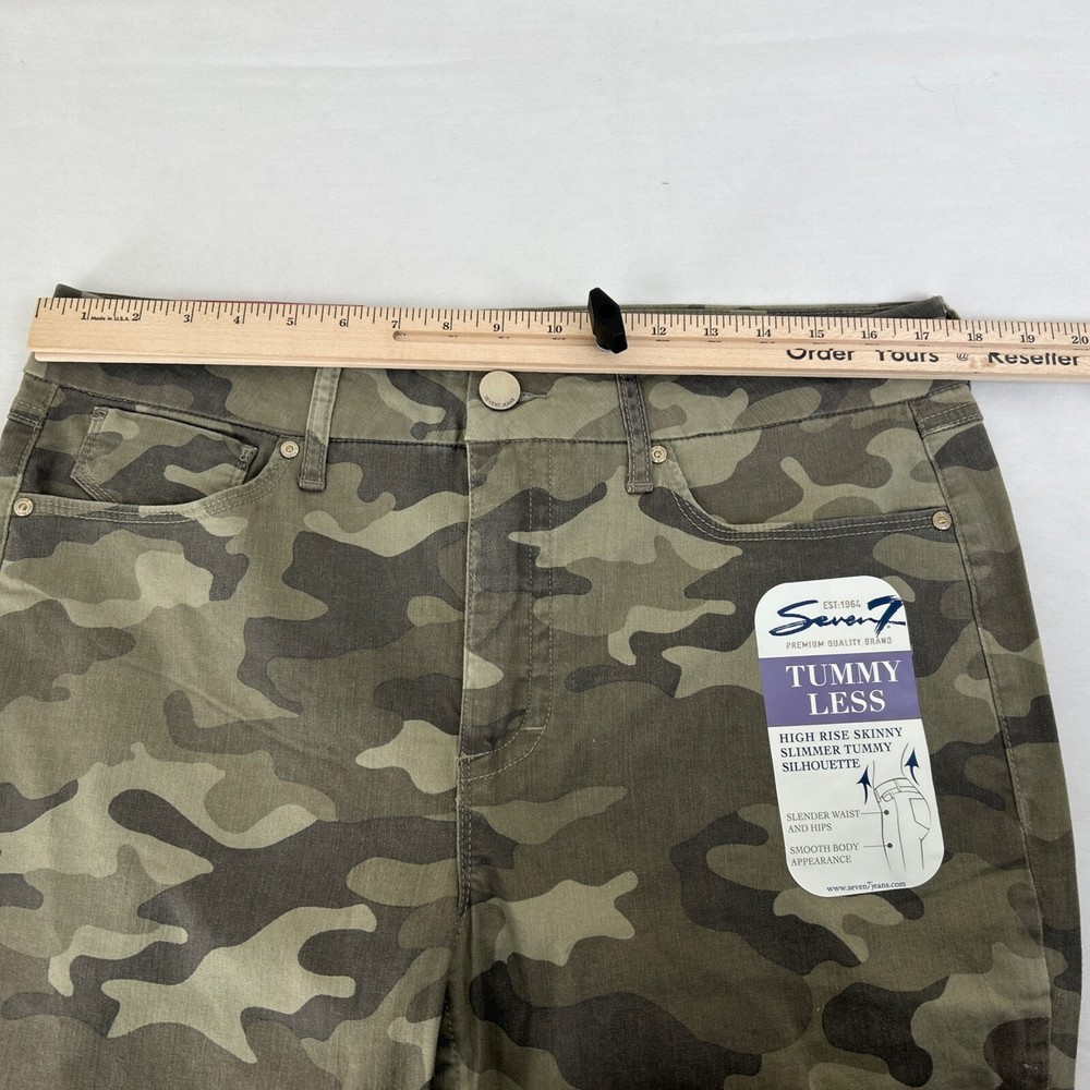 Elevate your fashion game with these stylish Seven7 jeans in a green camouflage pattern. These high-rise skinny jeans are made from a comfortable cotton blend with stretch technology, making them perfect for everyday wear. The 5-pocket design and zip closure add functional elements to this modern piece, while the machine-washable garment care ensures easy maintenance. These jeans are perfect for women who want to look great without sacrificing comfort. The high-rise waistband provides a slimming effect, while the easy-care fabric allows you to focus on your day-to-day activities. Whether you're running errands or going out with friends, these jeans will keep you looking stylish and feeling comfortable.