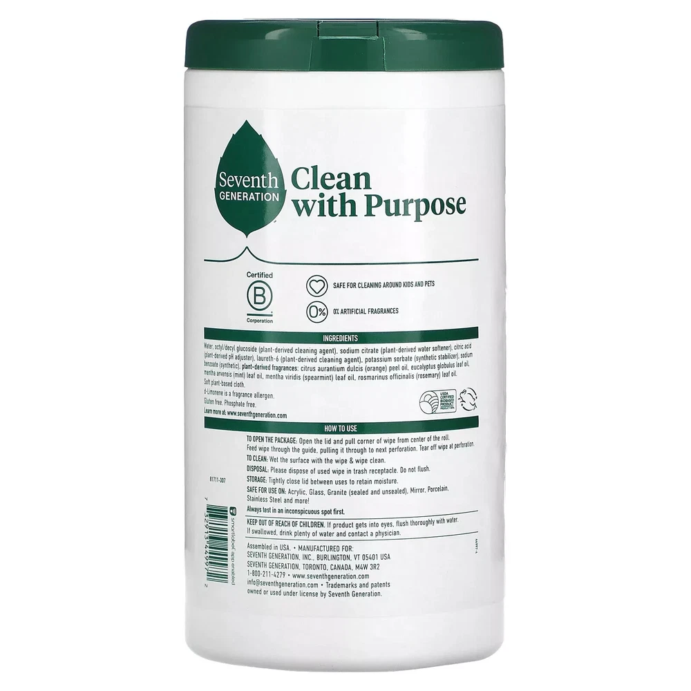 Seventh Gen Garden Mint Multi-Surface Wipes 70ct - Fresh Scent, Easy Cleaning
