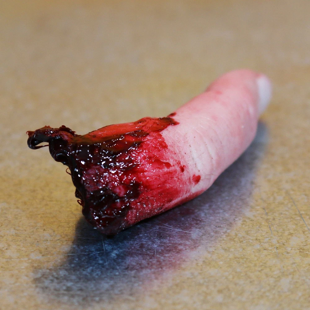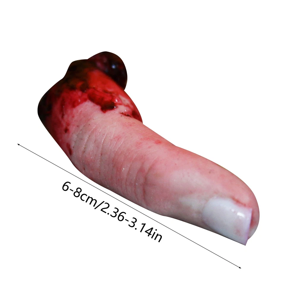 Bloody Severed Finger Halloween Decoration Prank Or Prop Bloody Severed Finger. Halloween Decoration Bloody Severed Finger Features: Realistic bloody severed finger. Want to a creepy to your Halloween decorations? Check out our scary bloody severed finger prop! This handmade, lifelike of a severed finger is sure to and horrify everyone who sees it. The finger is made of low-durometer styrofoam to give it a fleshy feel. The blood is dyed silicone to create the color so the color won't stain. Made of high-quality materials with realistic colors, including acrylic nails, this prop is perfect for setting the scene for your next Halloween party or . Whether you're a movie fan, Halloween enthusiast, or just looking for a unique and scary prop, our bloody severed finger is the perfect addition to your collection. today and get ready to scare all of your guests! This listing is for one finger. If you want more than one finger, be sure to select more. Product Description: Material: Styrofoam Color: Bloody Weight: About 50g Includes: 1X bloody severed finger.