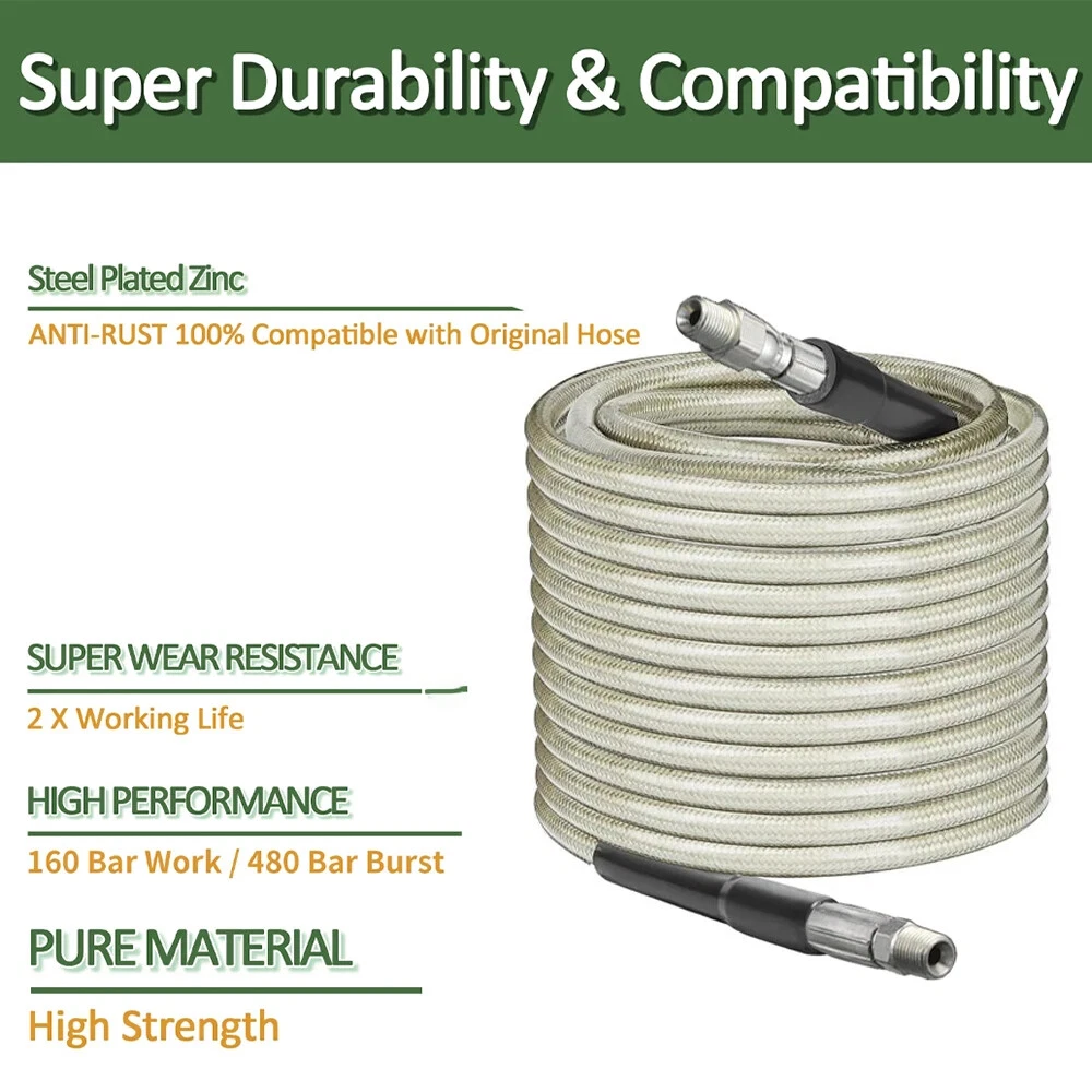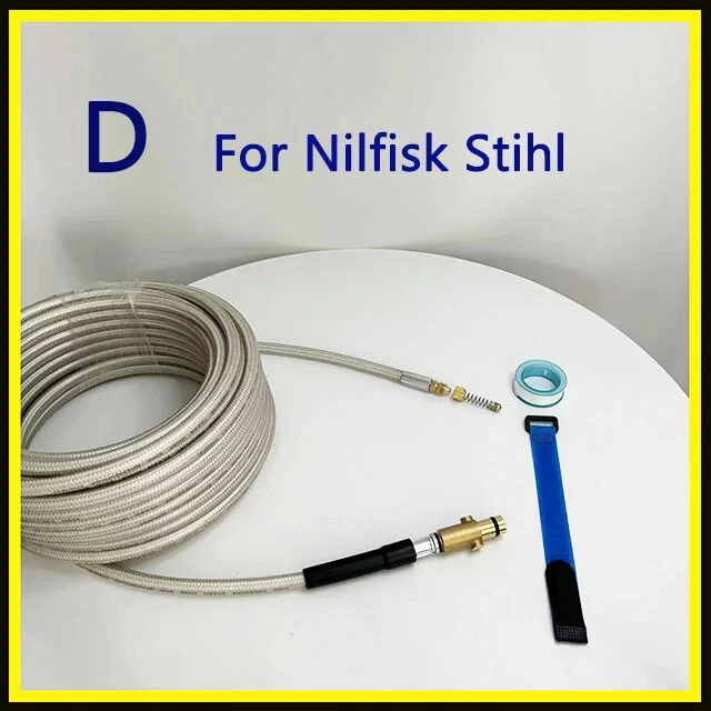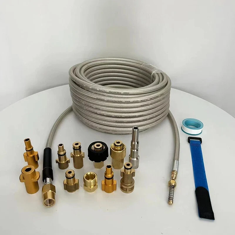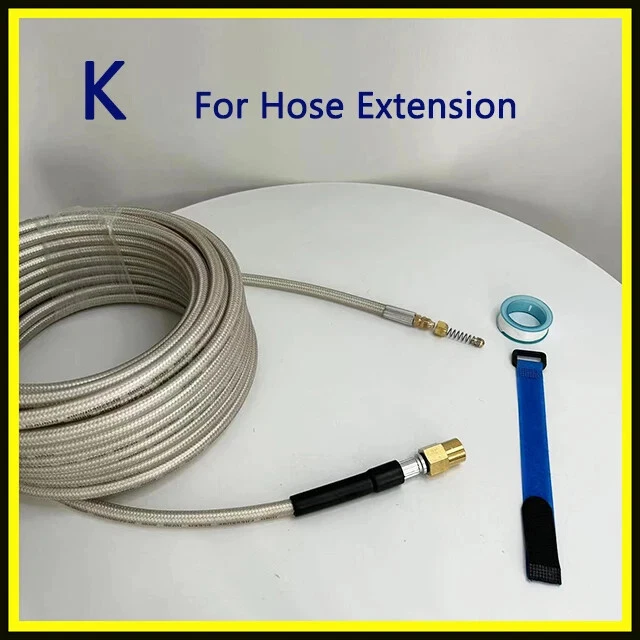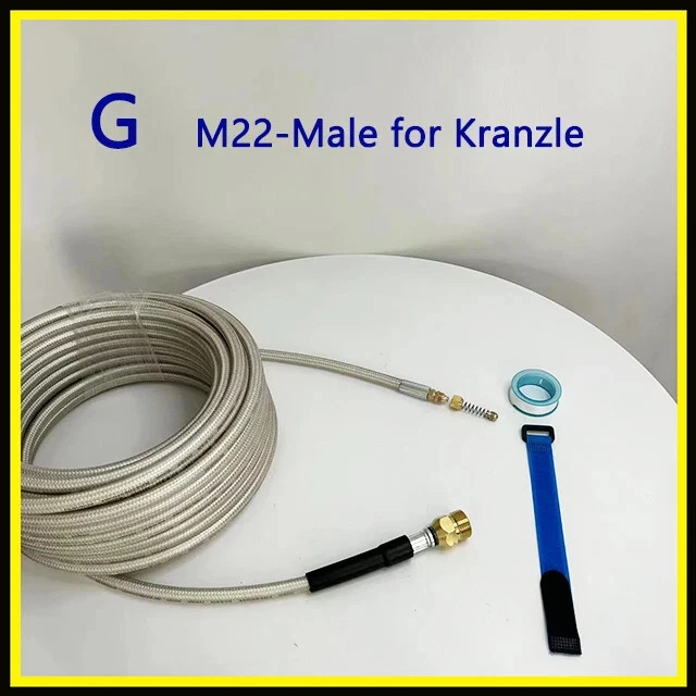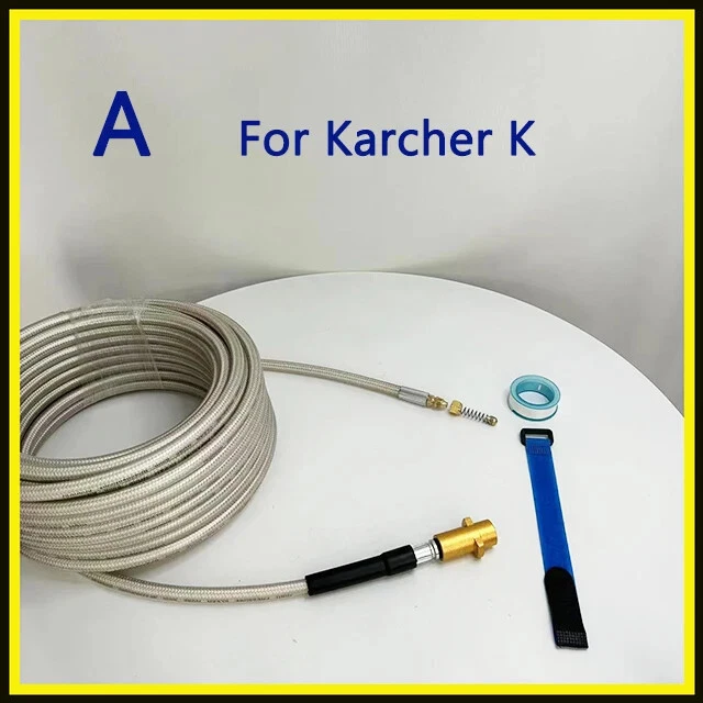 1/4" * 2~40m / 32ft * 180Bar/ 3800PSI Sewer Drain Water Cleaning Hose with Removable Nozzle and Optional Adapter for Most of High Pressure Washers A. For Karcher K-Series pressure washer; B. For AR Blue Clean/ Black Decker (Russia & Europe)/ Michelin / some of Interskol/ Makita / Most of Bosch / Mac Allister / Greenworks G2~G6 pressure washers C. For Elitech/ some of Interskol / Daewoo / some of Patriot / Bort / some of Huter pressure washers D. For Nilfisk / STIHL / HUSQVARNA / Gerni / Greenworks G10~G70 pressure washers E. For Lavor / some of Hammer Flex / Sterwins / Vax / Champion / Parkside / Deko / Craftsman / Briggs stratton pressure washers F. For some of Huter / Anlu pressure washers G. For Kranzle / Water gun with M22-Female pressure washers H. For some of Bosch old (before 2013) / some of Hammer Flex pressure washers I. For some of Karcher Pro HD/ HDS pressure washers (Old trigger gun with standard M22-Male outlet) J. For some of Karcher Pro HD/ HDS pressure washers (Easy Force trigger gun) K. For extension hose (Sewer nozzle not included) L. For 1/4" Quick Release Plug M. Sewer cleaning hose with For Nilfisk Kew For use on pressure washers with pressures ranging from 180 to 3800 PSI For use in electronic cold cleaning machine Connector to Gun is quick connector Max. Temperature: 140F/60C (Disclaimer: We are not these brands or affiliated with them above. We did not sell these Pressure Washers, but do offer some compatible parts for foam gun for car wash,고압세척기,High pressure washer,كارشر,Karcher,Lavadora de alta pressão,High pressure washer,karcher adapter,piezas de karcher,karcher parts,karcher nettoyeur haute pression,Karcher high pressure cleaner,adaptateur batterie parkside,parkside battery adapter,كارتشر,kartcher,sonda sturatubi idropulitrice,pressure washer probe,idropulitrice alta pressione,high pressure pressure washer,pistola de agua alta pressão,high pressure water gun,pulverizador de espuma,foam sprayer,gartengeräte,garden equipment,помпа мойки высокого,high washing pump,car washer 12v,배관청소,Pipe cleaning,폼건,Foam gun,manguera para hidrolavadora karcher,hose for karcher pressure washer,sabão,soap,mangera para hidrolavadora de alta presión,high pressure washer hose,고압세척기 어댑터,high pressure washer adapter,водяной пистолет и пена для снега,water gun and foam for snow,압력세척기호스,pressure washer hose,boquilla giratoria hidrolavadora,rotary nozzle pressure washer,pressure washer hose,pressure washer hose,насадки керхер,nozzles karcher,pressure washer quick connector,pressure washer quick connector,nozzle pressure washer,nozzle pressure washer,пеногенератор для мойки,foam generator for washing,canhao de espuma automotivo,automotive foam cannon,high pressure washer accessories,high pressure washer accessories,refacciones para carcher,spare parts for carcher,filtro de hidrolavadora,pressure washer filter,cabesal hidrolavadora,hydraulic washer,мийка автомобіля,car wash hosen,fuel hoses,hose,Hose,mangueira,mangueras de combustible,fuel hoses,manguera,mangueira de jardim,Hose garden,oil burner glass pipe,aquarium,slingshot,tube,fuel hoses,mangueiras de combustível,호스,tirachinas,latex,Slingshot,torneira,Tap,manguera jardín,garden hose,silicone tube