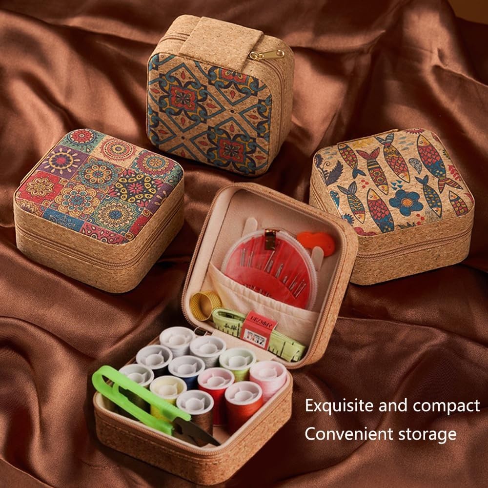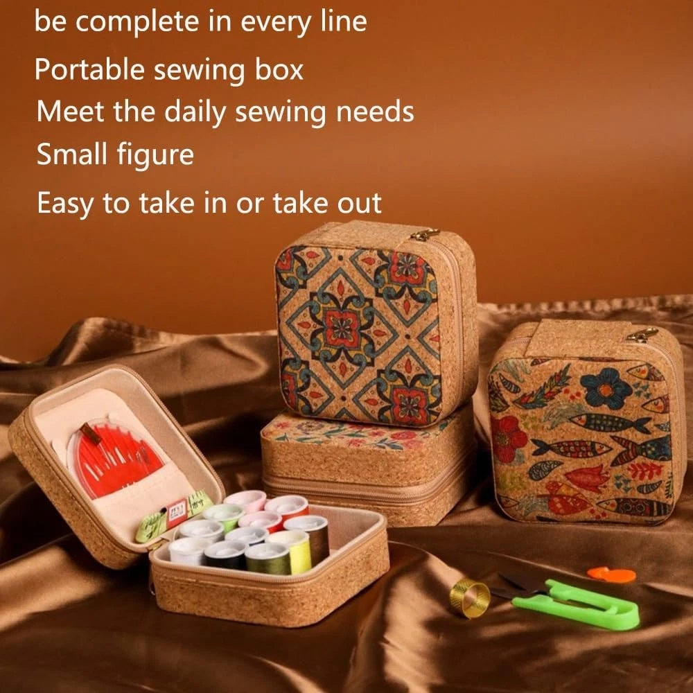 Sewing Box,Portable Travel Sewing Kit ,Vintage Soft Wood Print Sewing Kit,Mini