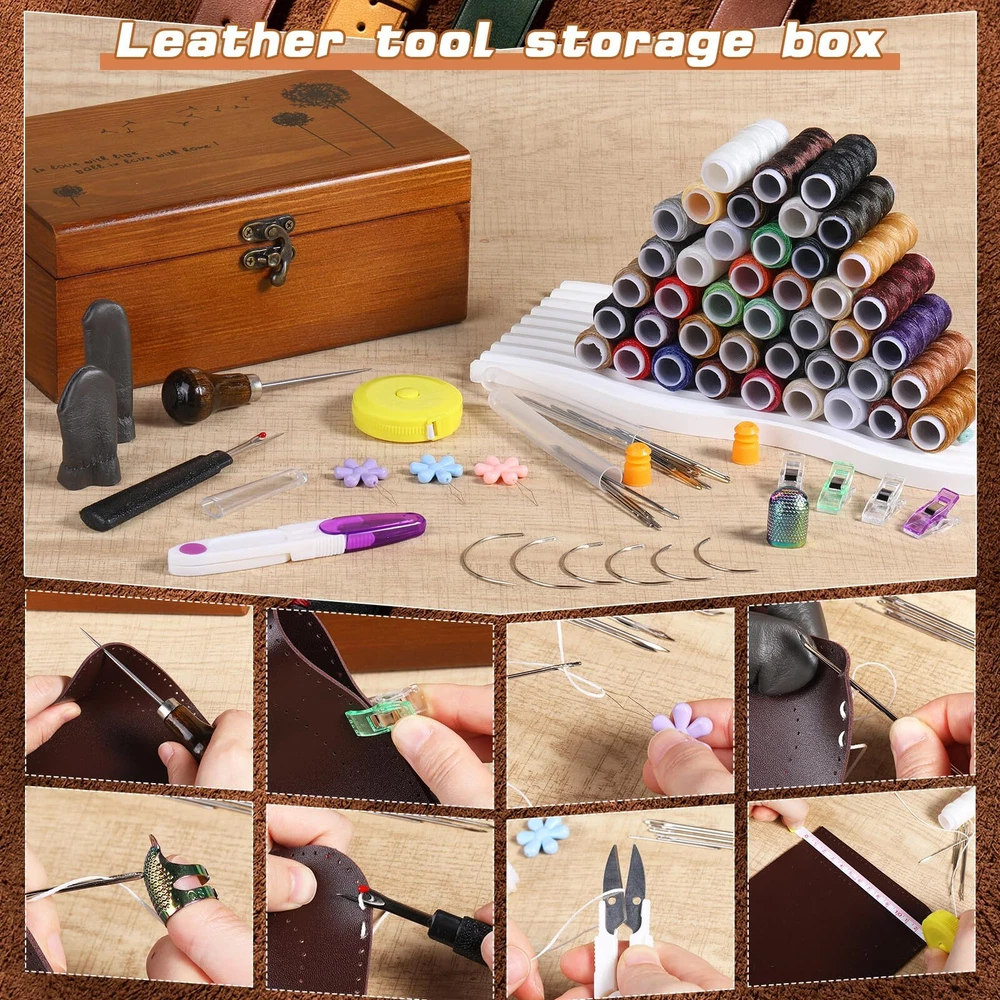 Abundant Upholstery Repair Kit - This leather sewing kit includes: 42 x leather waxed thread, 23 x leather sewing needles, 6 x curved needles, yarn scissors, thread ripper, 4 x sewing clips, awl, sewing thimble, measuring tape, all the necessary essentials for your sewing needs. Abundant Upholstery Repair Kit - This leather sewing kit includes: 42 x leather waxed thread, 23 x leather sewing needles, 6 x curved needles, yarn scissors, thread ripper, 4 x sewing clips, awl, sewing thimble, measuring tape, all the necessary essentials for your sewing needs. HAND SEWING THREAD - 13 yards (12m) of waxed leather thread, lightweight, portable, strong, and durable to use. We have more wax threads in basic colors and commonly used colors. The 28 colors are divided into 42 rolls, with more color options to meet different applicable scenarios. LEATHER STITCHING NEEDLES - Leather sewing needle manual paper art sewing needle suits Include triangle pointed needle, the tip needle, curved needle, etc. The leather stitching needles are made of quality materials, strong and tough. WIDELY USED - Perfect leather repair sew kit for carpets, upholstery, coats, tents, and mattresses. Practical and abundant leather DIY tools kit, you can sew different leather, fabric, denim, canvas, tarpaulin, or other projects. This is an essential tool for leather professionals and beginners. ELABORATELY CRAFTED - As craft professionals, we are well aware of what craft enthusiasts expect from the quality of their tools, so we have always emphasized the high demands on quality. This hand-stitched set can be used for a long time. Please choose with confidence.