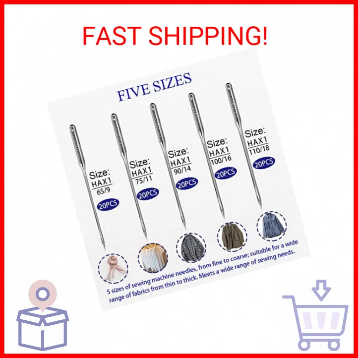 Sewing Machine Needles, Pack of 50, for Singer, Brother, Janome, Varmax and Home Sewing Machines. Universal Standard Needles in Sizes 65/9, 75/11, 90/14, 100/16, 110/18 - Easy to store: Sewing machine needles are packed in pp box. 50pcs machine needles, 10pcs of each size. 5 transparent plastic tubes, 2 metal thread bobbins, 60in sewing tape measure 1 strip (color random). - Compatibility: Sewing machine needles are compatible with Singers, Brothers, Janome, Varmax, and most home sewing machines. - Multiple models: Sewing machine needles are available in 5 sizes: 65/9 (muslin and other fabrics), 75/11 (medium to thin fabrics, such as shirts, etc.), 90/14 (ordinary fabrics), 100/16 (thicker fabrics, jeans, etc.), 110/18 (thicker fabrics). - High quality material: the machine needle is made of high quality steel, which has high hardness, good elasticity, sharp needle tip, wear and high temperature resistance, smooth needle hole and long service life. - Quality Assurance:If there are any problems with our products, contact us and we would be very happy to solve your problems. Payments We accept the following payment methods PayPal Support Our dedicated customer support team is here to assist you from 9AM to 5PM Monday through Friday, excluding public holidays. Should you reach out to us and not recieve an immediate response, it's likely due to a higher-than-usual volume of inquires. We want to reassure you that your concerns are important to us, and we're working dilligently to get back to you. Expect a response by the next business day at the latest. Your understanding and patience are greatly valued as we strive to provide you with the best support possible! Shipping All orders are processed within 5 business days. Shipping estimates may be shown on this listing by eBay, and these are often not an accurate reflection of our shipping times. If we are experiencing a high volume of orders, shipments may be delayed by a few days. Please allow additional days in transit for delivery. If there will be a significant delay in shipment of your order, we will contact you via message. Shipping rates & delivery estimates Shipping is often free, but if charges for your order apply they will be calculated and displayed at checkout.