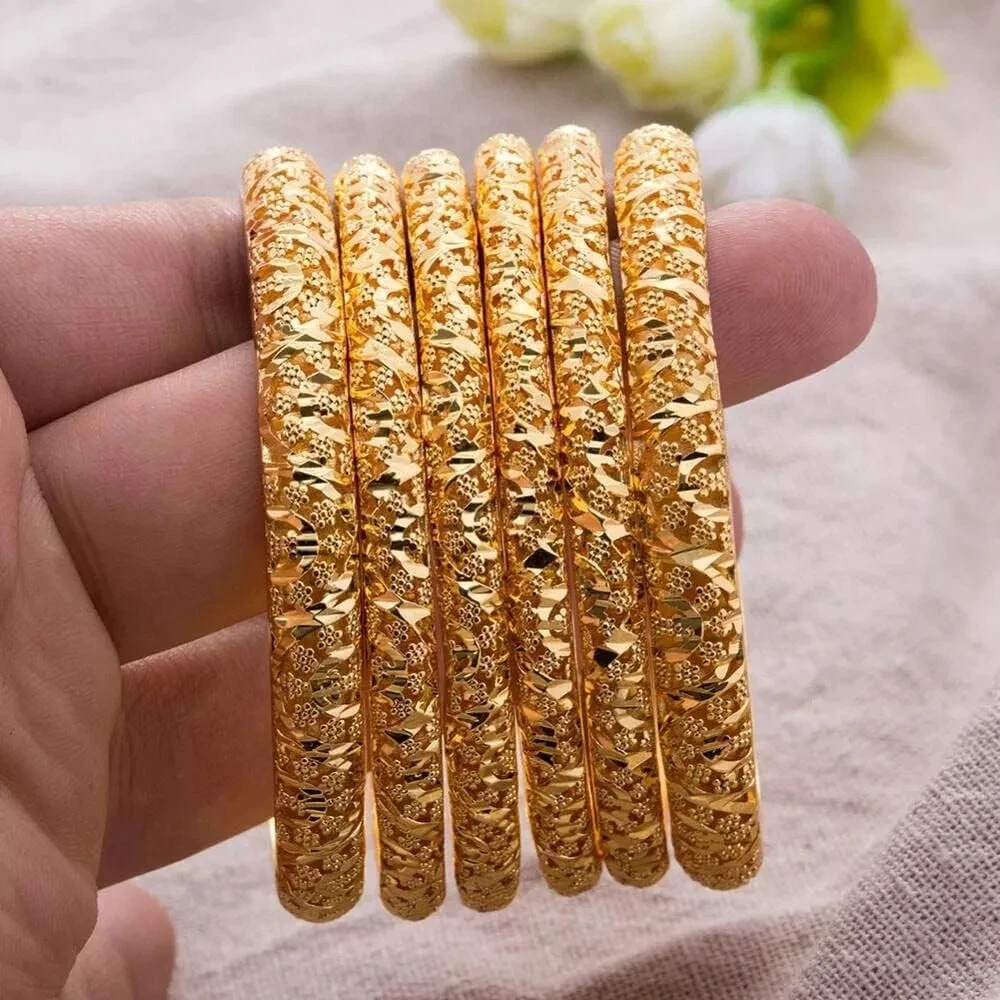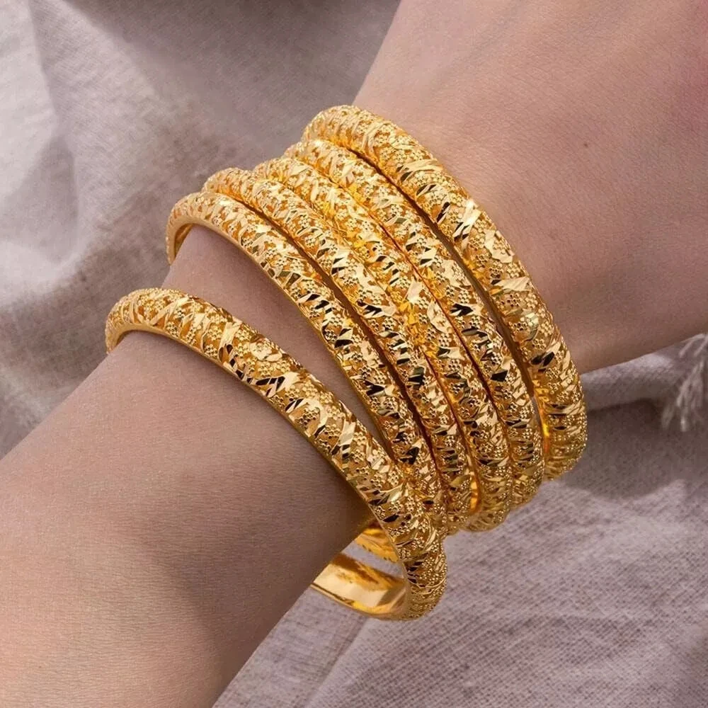 Gold Color Bangles For Arabic Middle East African Women And Girls Jewelry Gift Set of 4 Metals Type: Copper Origin: HK(Origin) Bracelets Type: Cuff Bracelet Style: Classic Fine or Fashion: Fashion Material: Metal Compatibility: All Compatible Function: Period Tracker Setting Type: None Shape\pattern: Geometric Plating: Gold Color Plated Package 4 pcs