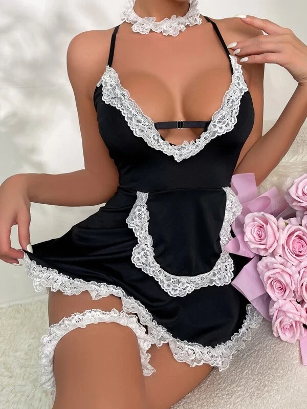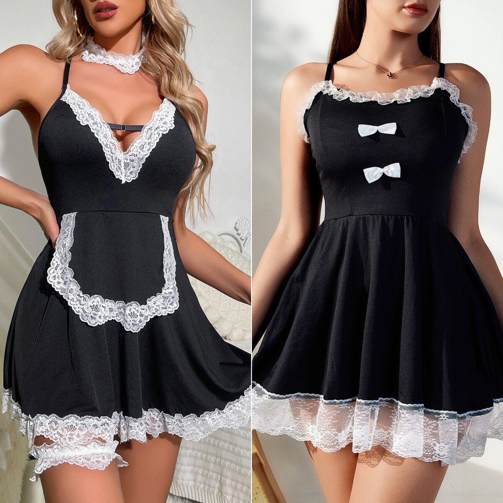 Maid-A/B : 85%Ployester 15%Acrylic Imported Material: Stretchy and soft silk material, very comfortable to wear Great ideal for party, wedding night, honeymoon, a nniversary gifts and every special nights Hand washing or machine washing with lingerie bag Please refer to the size measurement in image before o rdering Package Content:Dress*1+Panty*1+Chocker*1+Lace Cuffs Maid-C : Material: 65%cotton + 35%polyester, ultra smooth touch feeling, hollow out, lace, bow, ruched details design. French maid outfit, sheer fabric with lace apron design makes you more sexy and to spice up bedroom activities Unique design for women, perfect for honeymoon night, wedding nights, lingerie party, anniversaries, valentine's day, bedroom, sleeping, bathing, or special nights, It will make you more stunning Package Include: 1 x Women one piece Lace Bodysuit (other accessories are not included) Maid-D : 👩❤️👨Sexy maid lingerie for women is made of 95%rayon5%spandex,it is soft and comfy to wear. it has a good amount of stretch. 👩❤️👨Maid lingerie for women features with a white headband.A removable choker.Deep v neck self tie bra with white lace trim.A high waist mini skirt with white lace trim at the bottom,matching with G-string panty and apron. It makes your so lovely and charming in front of your lover. 👩❤️👨Sexy Roleplay Lingerie Set has unique design:the chocker apron and headband can be removed. It can be your favorite cosplay set and also a casual outfit 👩❤️👨The cosplay lingerie is suitable for nightwear, night club wear, party, Halloween festival clothing Nightclub, Cosplay party,Bedroom,Special night etc.Student lingerie is makes you more sexy and naughty 👩❤️👨Package Include: 1 x sexy maid outfit with apron,1 x Free chocker Maid-E : 85%Ployester 15%Acrylic Imported Material: Stretchy and soft silk material, very comfortable to wear Great ideal for party, wedding night, honeymoon, anniversary gifts and every special nights Hand washing or machine washing with lingerie bag Please refer to the size measurement in image before o rdering Package Content:Maid Dress*1